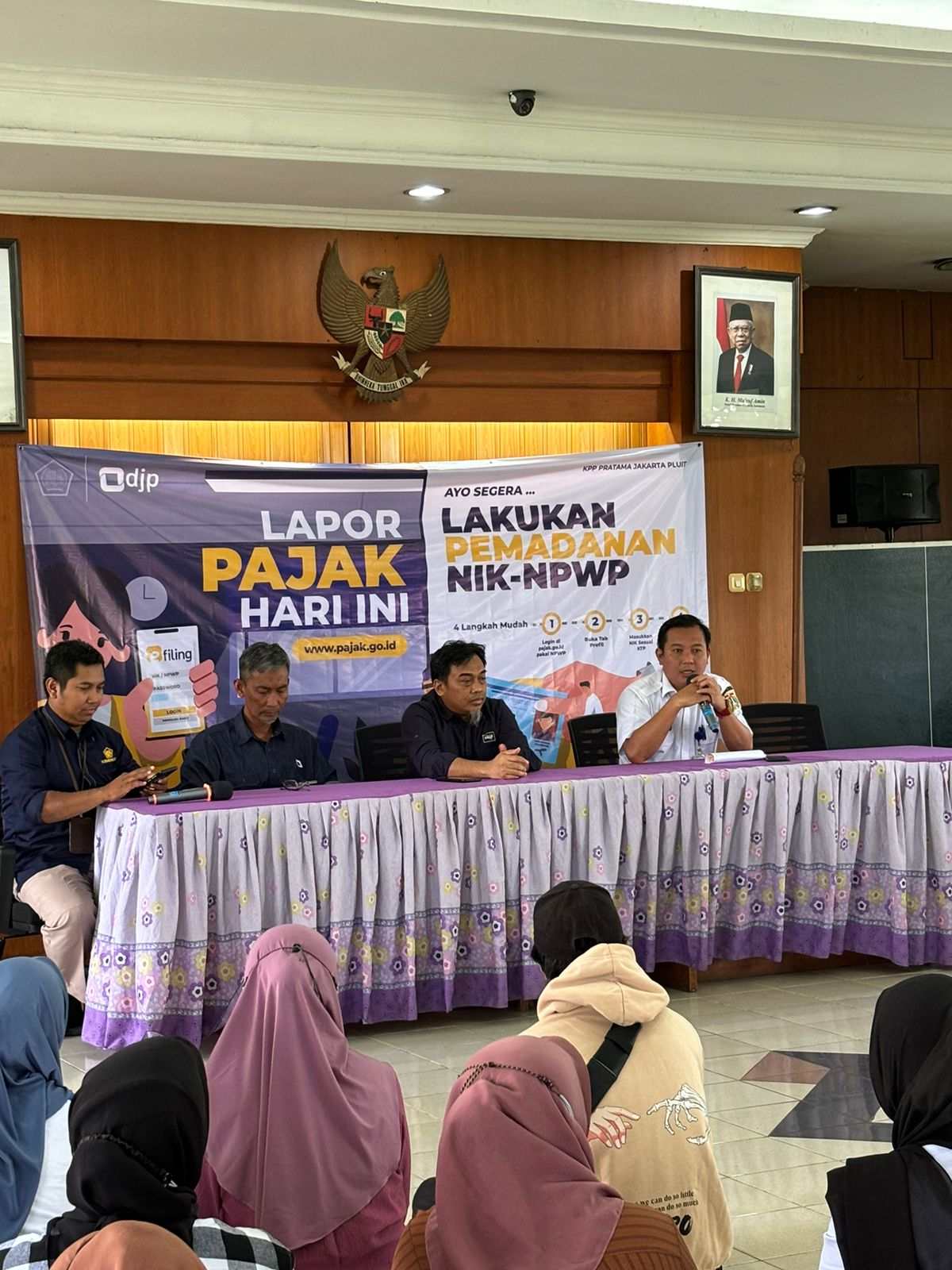 Untuk mendukung kepatuhan Wajib Pajak dalam pelaporan Surat Pemberitahuan (SPT) Tahunan, Kantor Pelayanan Pajak (KPP) Pratama Jakarta Pluit mengadakan kegiatan sosialisasi dan pojok pajak di Kantor Kelurahan Pluit (Rabu 28/2). Kegiatan diikuti 100 Wajib Pajak Orang Pribadi, terdiri dari Petugas Penanganan Prasarana dan Sarana Umum (PPSU) serta staff di lingkungan Kantor Kelurahan Pluit.