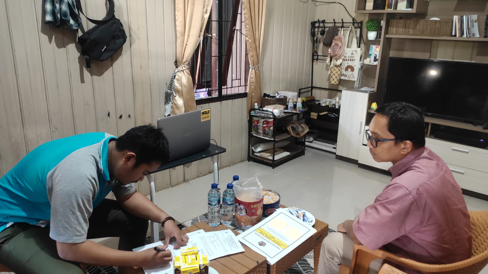 Kepala dan Pelaksana Kantor Pelayanan, Penyuluhan, dan Konsultasi Perpajakan (KP2KP) Sangatta Ricky Winanto dan Exa Purba melakukan verifikasi lokasi usaha wajib pajak di Desa Muara Pantun, Kecamatan Telen, Kabupaten Kutai Timur (Selasa, 21/06). Wajib pajak ini sebelumnya telah melakukan permohonan Pengukuhan Pengusaha Kena Pajak (PKP) dan aktivasi akun PKP ke KP2KP Sangatta.