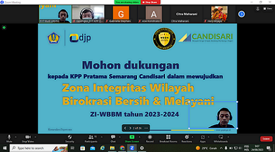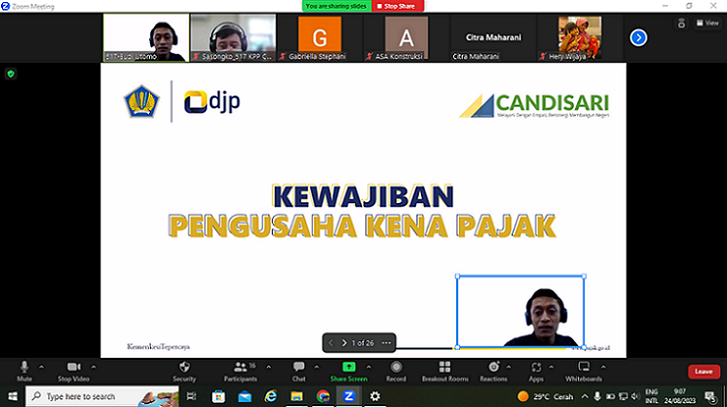 Penyuluh Pajak Kantor Pelayanan Pajak (KPP) Pratama Semarang Candisari menyelenggarakan kelas pajak secara daring melalui Zoom Meeting di Semarang (Kamis, 24/8).