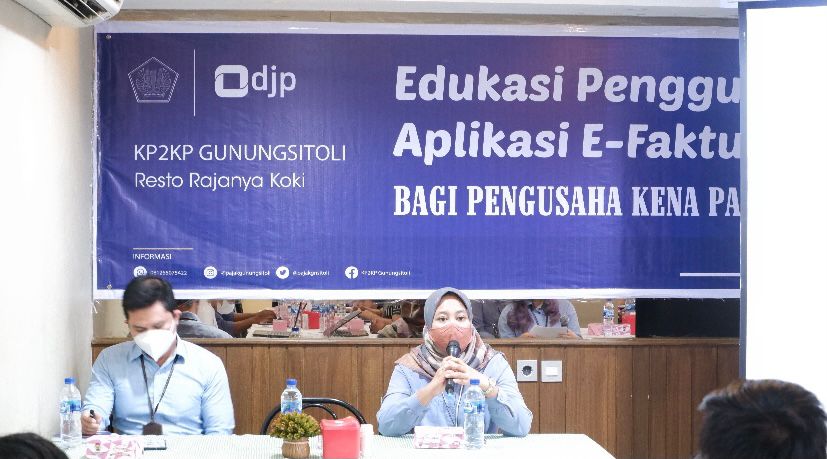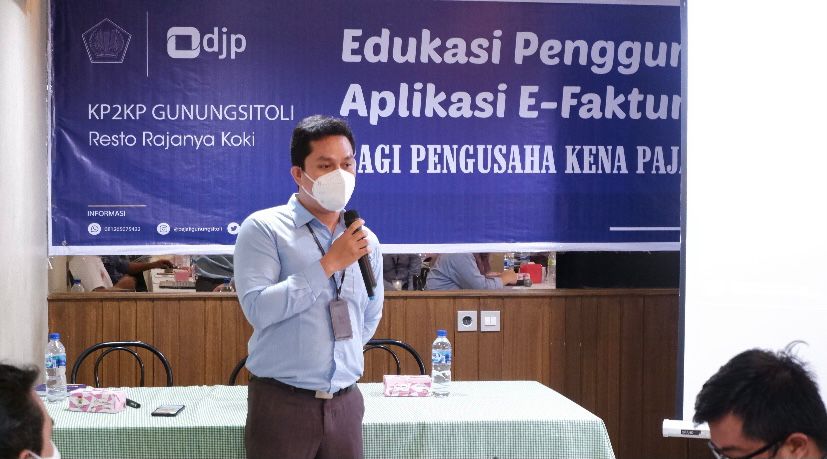 Kantor Pelayanan Pajak (KPP) Pratama Sibolga bersama Kantor Pelayanan Penyuluhan dan Konsultasi Perpajakan (KP2KP) Gunungsitoli menyelenggarakan kegiatan Edukasi Perpajakan dalam Penggunaan Aplikasi e-Faktur di Resto Rajanya Koki, Gunungsitoli, Sumatera Utara (Selasa, 05/10).