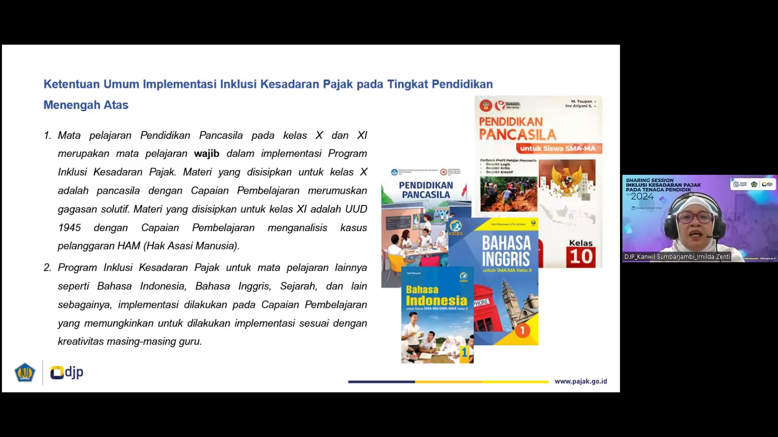 Kantor Wilayah Diektorat Jenderal Pajak (DJP) Sumatera Barat dan Jambi bekerja sama dengan Dinas Pendidikan Provinsi Sumatera Barat mengadakan Tahap I Inklusi Kesadaran Pajak, Koordinasi dan Sharing Session kepada tenaga pendidik sekolah menengah (Selasa, 26/3). Tenaga pendidik yang mengikuti kegiatan tersebut terdiri dari 12 Sekolah Menengah Atas (SMA)/Sekolah Menengah Kejuruan (SMK) di kota Padang yang direkomendasikan oleh Dinas Pendidikan Provinsi Sumatera Barat. Kegiatan tersebut dilakukan secara daring melalui media Zoom Meeting Conference.