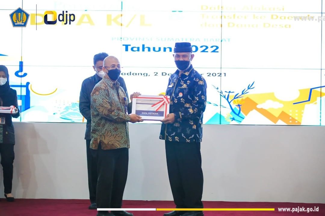 Kepala Kantor Wilayah Direktorat Jenderal Pajak (Kanwil DJP) Sumatera Barat dan Jambi yang diwakili oleh Kepala Bidang Data dan Pengawasan Potensi Perpajakan , Rizaldi Kurniawan Ridwan menghadiri undangan Penyerahan Daftar Isian Pelaksanaan Anggaran (DIPA) Kementerian/Lembaga Negara (K/L) serta Daftar Alokasi Transfer ke Daerah dan Dana Desa (TKDD) Tahun 2022 di Auditorium Gubernur Sumatera Barat, Padang (Rabu, 2/12).