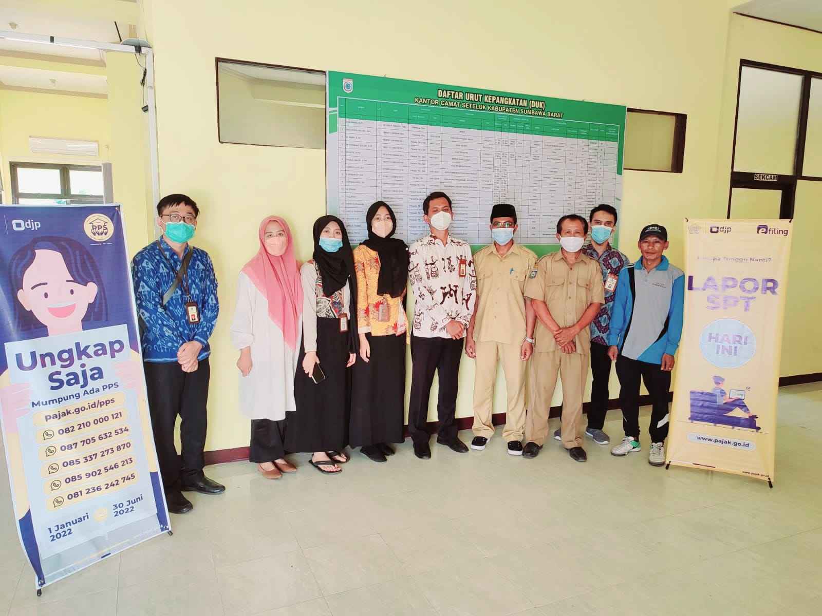 Kantor Pelayanan Pajak Pratama (KPP) Sumbawa Besar dan Kantor Pelayanan, Penyuluhan, dan Konsultasi Perpajakan (KP2KP) Taliwang membuka layanan pojok pajak di Kecamatan Seteluk, Kabupaten Sumbawa Barat (Selasa, 22/3).