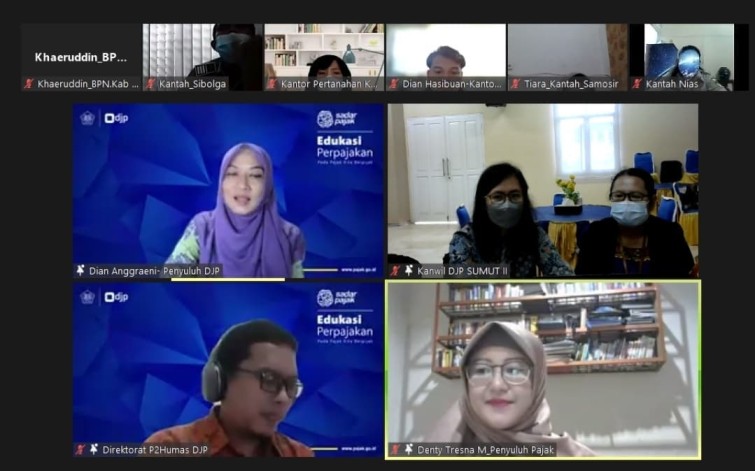 Direktorat Jenderal Pajak mengadakan kegiatan kelas pajak bersama seluruh satuan kerja Kementerian Agraria dan Tata Ruang/Badan Pertanahan Nasional (BPN) Republik Indonesia (RI) Kementerian Lingkungan Hidup dan Kehutanan yang berada dalam wilayah kerja Kantor Wilayah Direktorat Jenderal Pajak (Kanwil DJP) Sumatera Utara II secara daring (Selasa, 24/8).