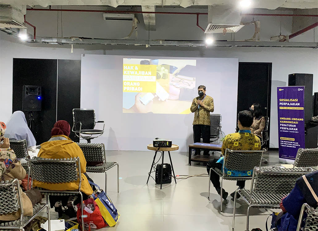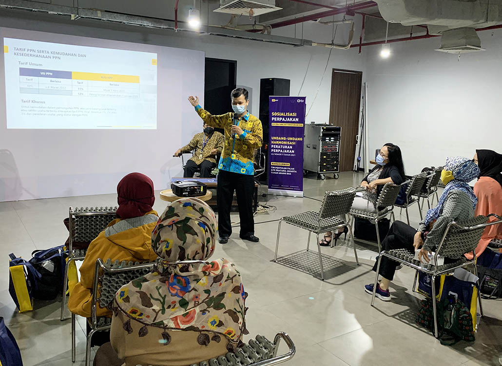 KPP Pratama Jakarta Tanah Abang Dua mengadakan sosialisasi perpajakan terkait Undang-Undang Nomor 7 Tahun 2021 tentang Harmonisasi Peraturan Perpajakan (UU HPP) yang merupakan kolaborasi antara KPP Pratama Jakarta Tanah Abang Dua dengan Kecamatan Tanah Abang (Selasa, 30/11).