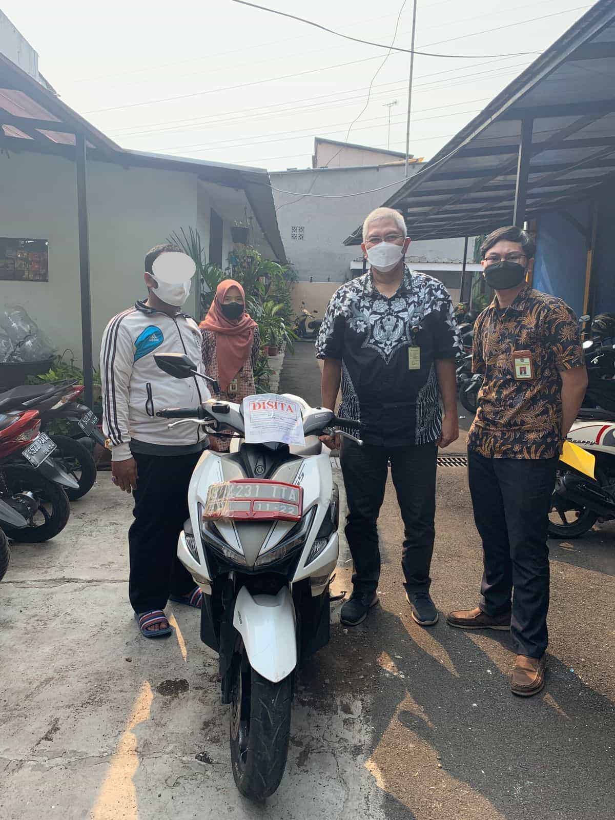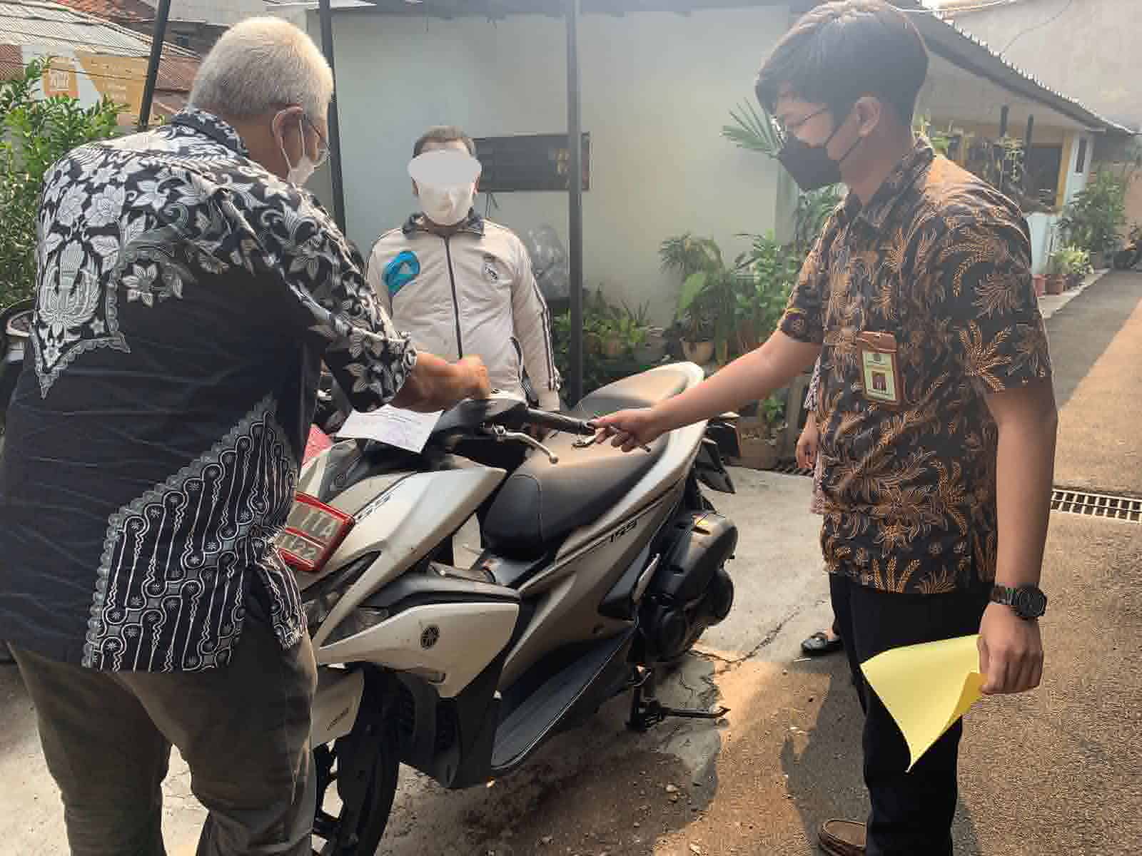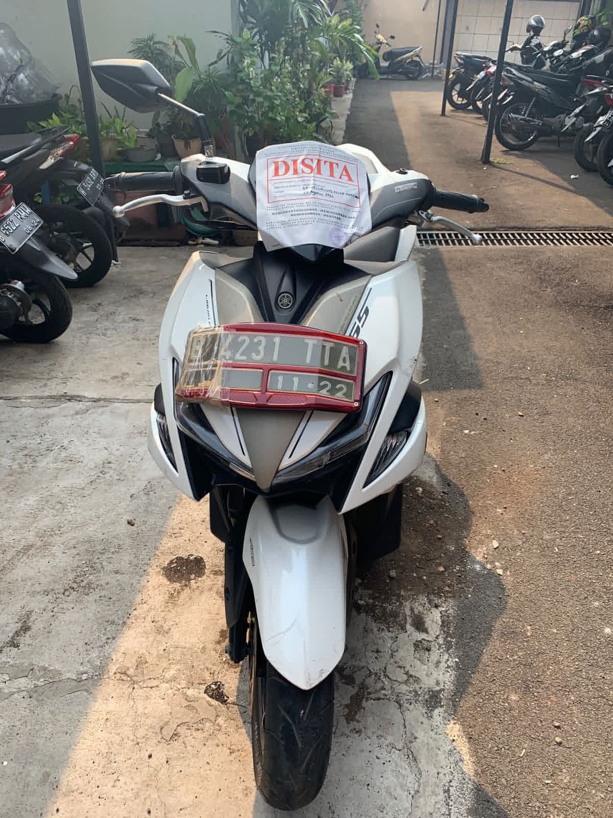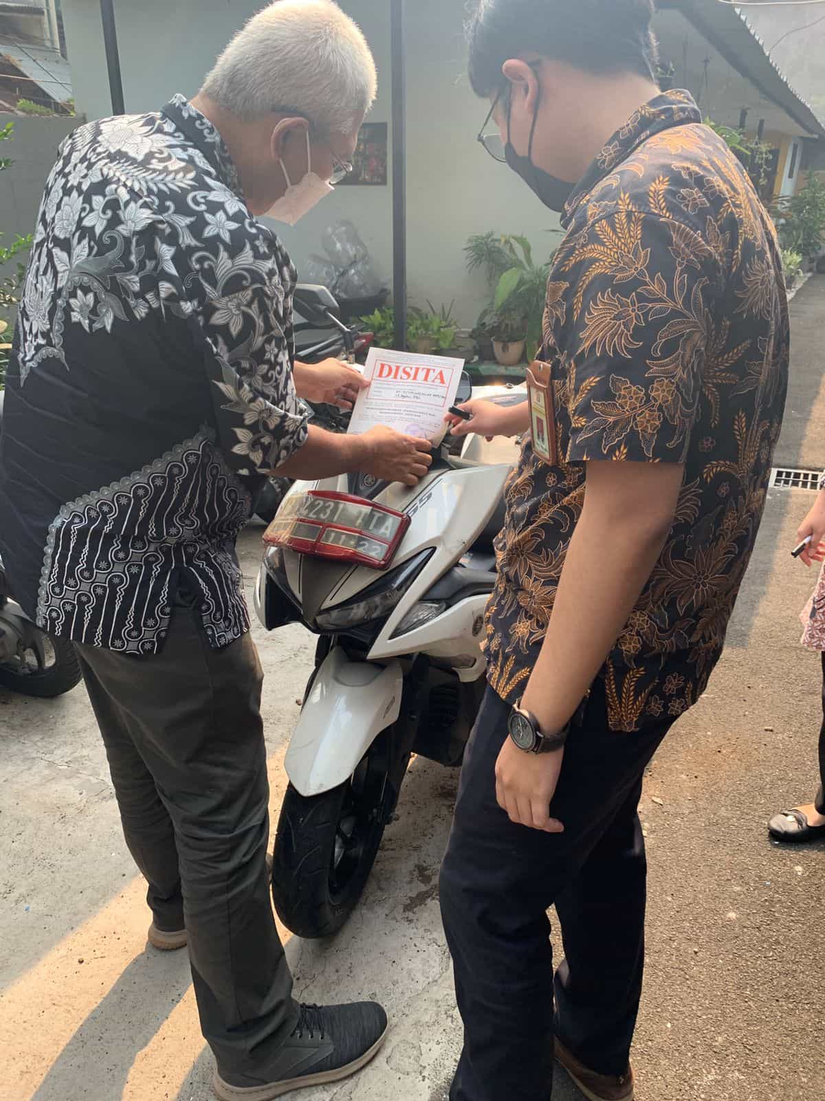 Juru Sita Pajak Negara Kantor Pelayanan Pajak (KPP) Pratama Jakarta Tanah Abang Satu melakukan penyitaan aset dari PT. MAR berupa kendaraan bermotor merek Yamaha Aerox Tahun 2017 di Jakarta (Jumat, 27/8).