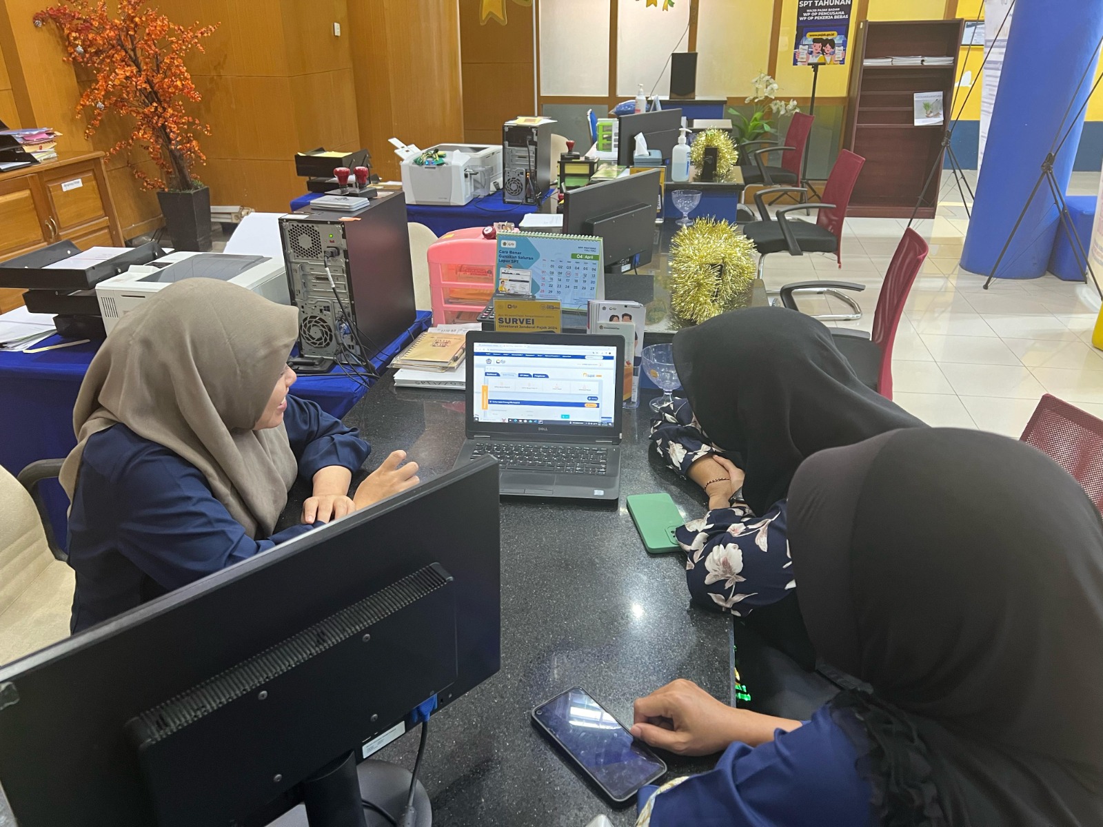 Pengurus PT IJP mendatangi Kantor Pelayanan Pajak (KPP) Pratama Tolitoli, Sulawesi Tengah (Rabu, 17/4). PT IJP merupakan wajib pajak yang baru saja terdaftar di KPP Pratama Tolitoli dan bergerak di bidang jasa pengurusan transportasi. Tujuan kedatangan Sari dan Endang, pewakilan badan tersebut, adalah untuk berkonsultasi terkait cara menggunakan sertifikat elektronik.