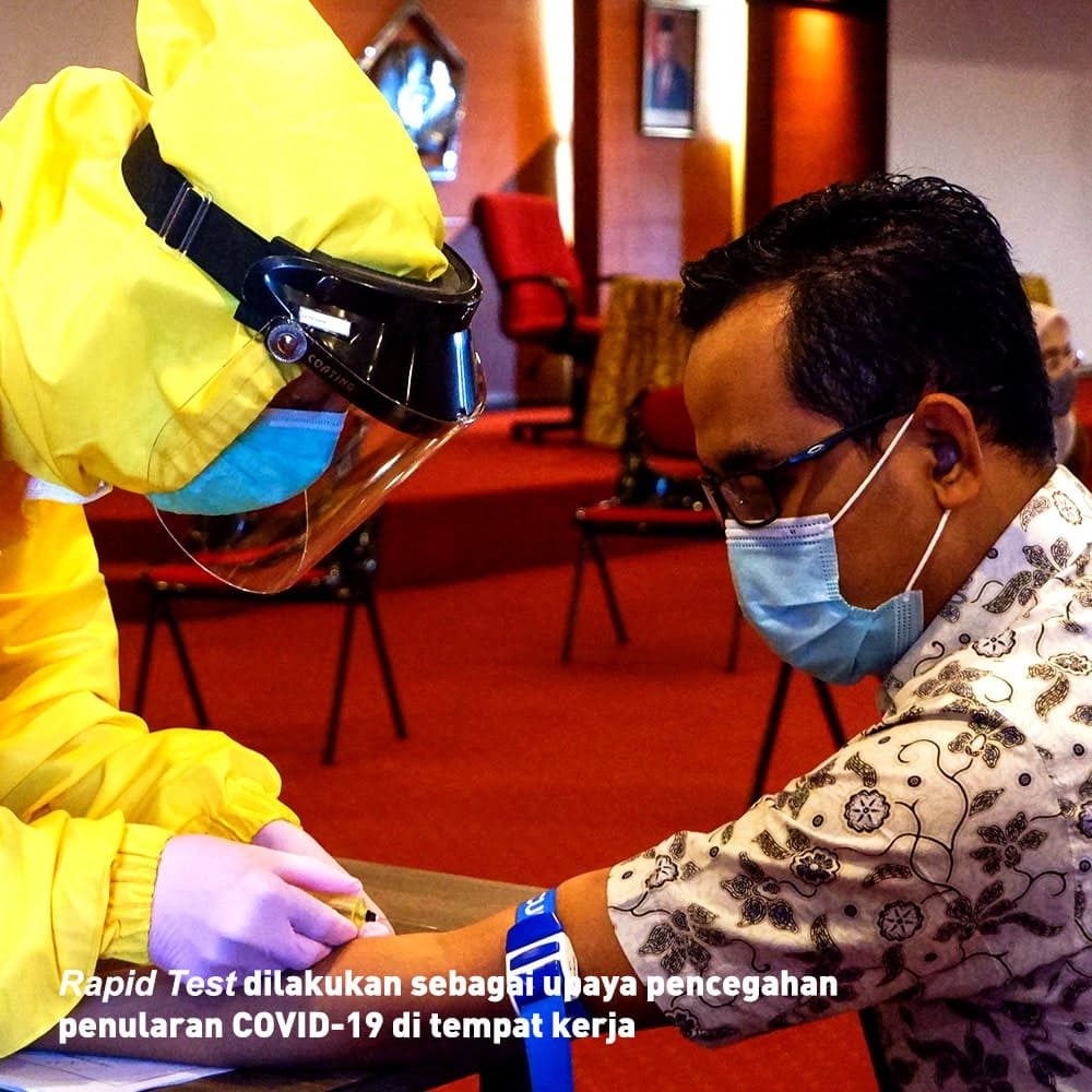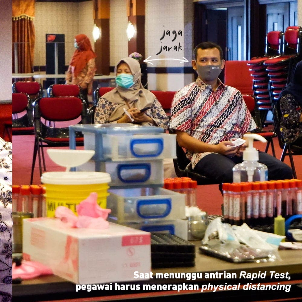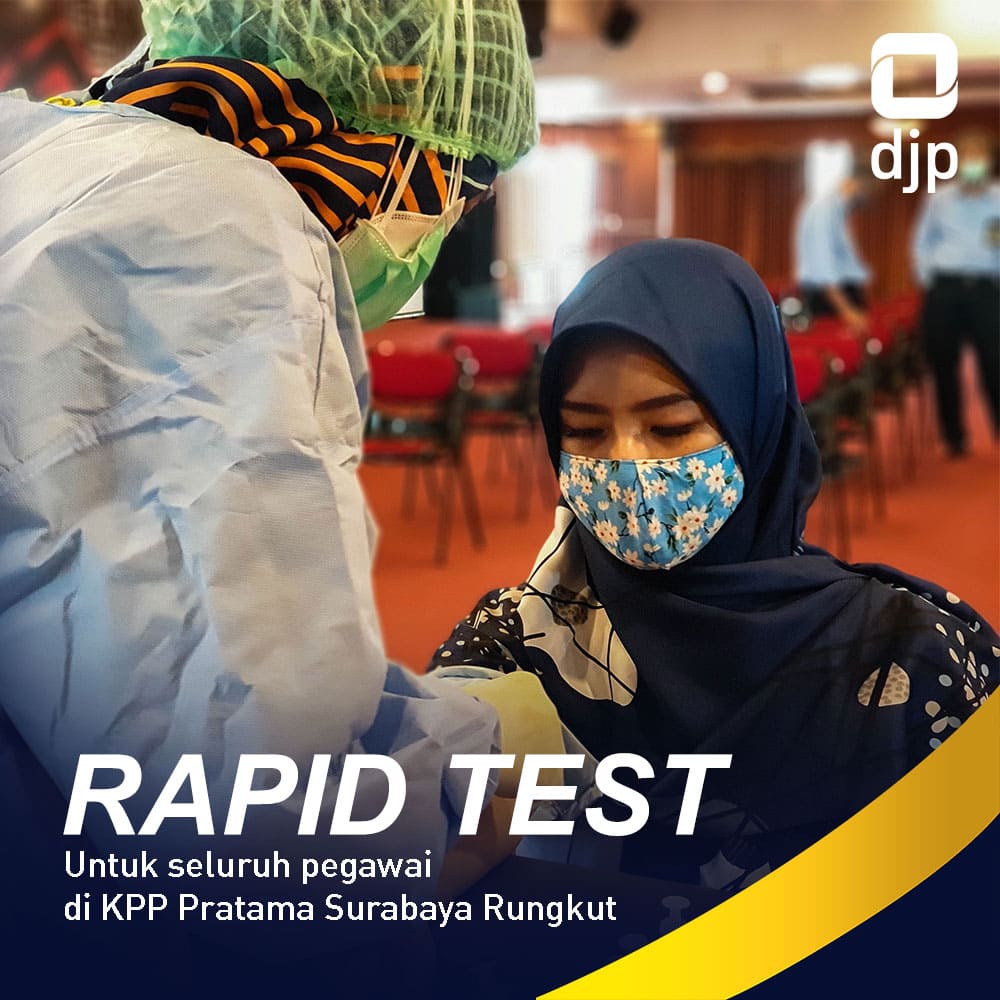Kantor Pelayanan Pajak (KPP) Pratama Surabaya Rungkut mengadakan kegiatan tes cepat (rapid test) Covid-19 yang diikuti oleh seluruh pegawai, bertempat di gedung KPP Pratama Surabaya Rungkut (Rabu, 7/10). Dalam pelaksanaannya, pegawai tetap memperhatikan protokol kesehatan dengan memakai masker dan menjaga jarak.