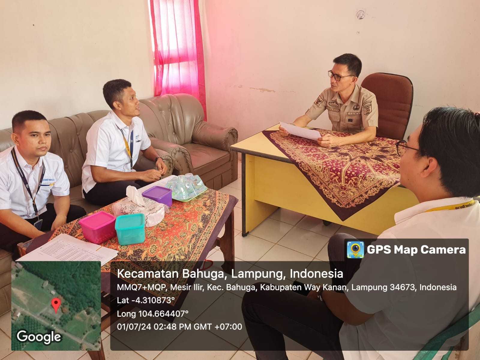 Kantor Pelayanan Pajak (KPP) Pratama Kotabumi melakukan kunjungan kerja ke Kantor Kecamatan Bahuga yang berlokasi di Desa Mesir Ilir Kecamatan Bahuga, Kabupaten Way Kanan (Senin, 1/7).