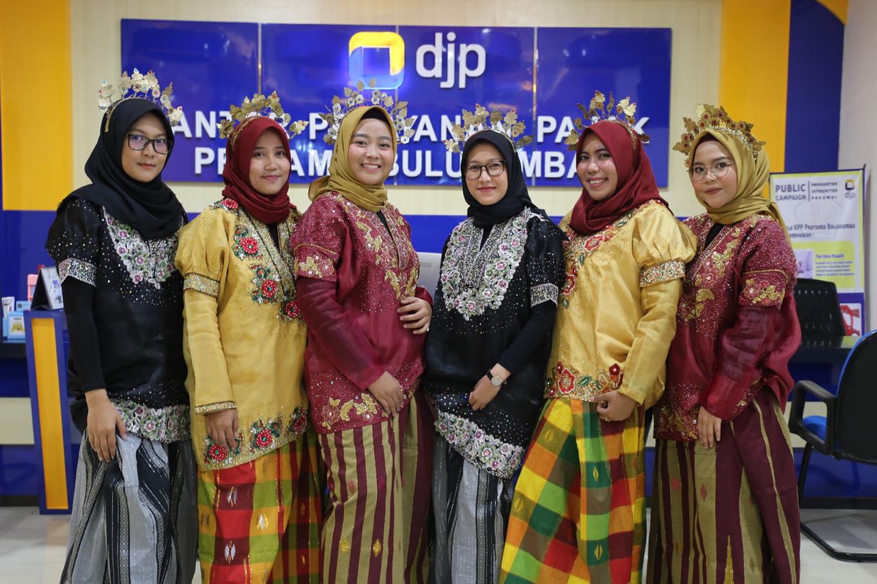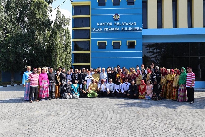 Pegawai Kantor Pelayanan Pajak (KPP) Pratama Bulukumba sambut peringatan Hari Oeang Republik Indonesia dan Sumpah Pemuda dengan memakai pakaian adat nusantara pada kegiatan upacara bendera (Rabu, 30/10). Upacara ini diadakan di lapangan KPP Pratama Bulukumba.