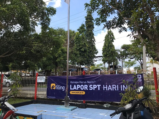 Pemasangan spanduk berisikan ajakan untuk melaporkan SPT Tahunan secara e-Filing yaitu pelaporan SPT Tahunan secara online melalui situs website www.pajak.go.id yang memudahkan wajib pajak untuk lapor SPT Tahunan, karena bisa dilakukan kapan saja dan di mana saja.