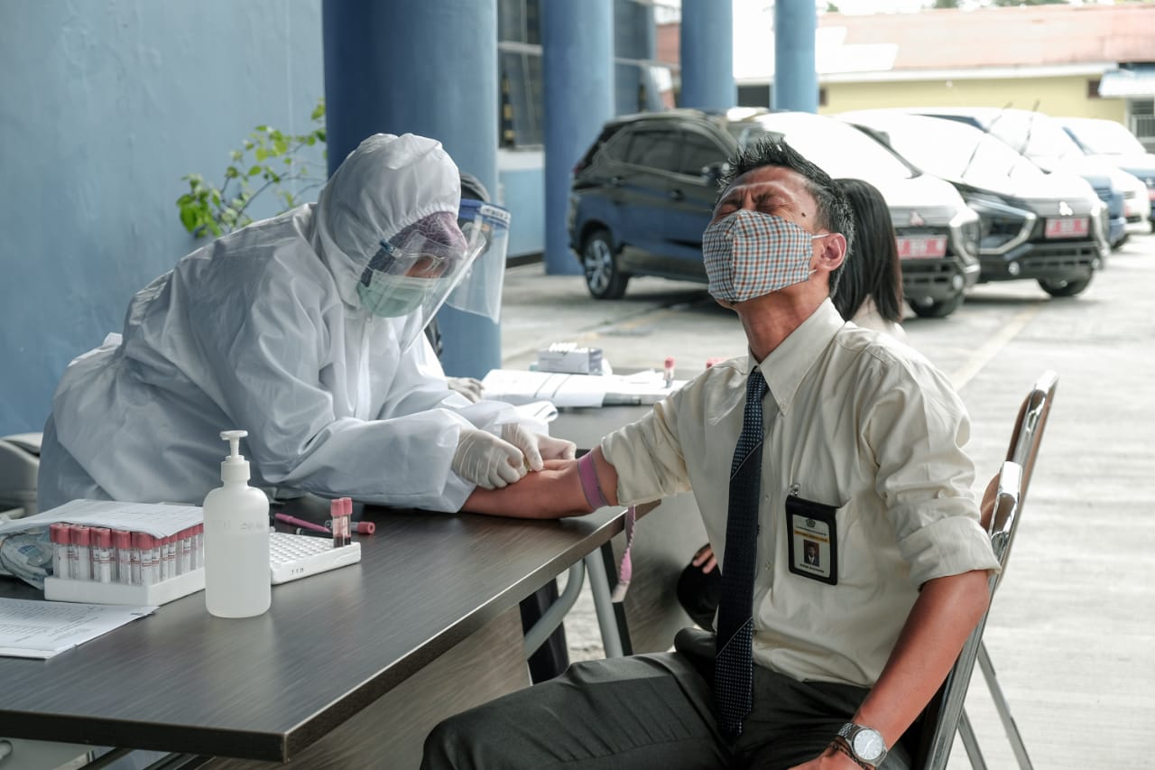 Kantor Pelayanan Pajak (KPP) Pratama Samarinda Ilir kembali mengadakan tes cepat (rapid test) Covid-19 bagi seluruh pegawainya di lapangan parkir KPP Pratama Samarinda Ilir (Kamis, 17/9). KPP Pratama Samarinda Ilir menggandeng Laboratorium Klinik & Radiologi Nur Asih untuk mengambil sampel darah para pegawai.