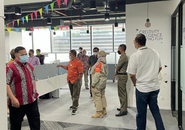 Kepala Kanwil DJP Jakarta Selatan II Edi Slamet Irianto bersama beberapa pejabat Eselon III mendampingi petugas pemeriksaan, Penyidik Pegawai Negeri Sipil Satuan Polisi Pamong Praja Prov. DKI Jakarta Henny Yusfida dan tim, untuk melakukan pengecekan di setiap ruang kerja termasuk ruang rapat dan aula. Hasil pemeriksaan dinyatakan tidak ditemukan melakukan pelanggaran PSBB yang dituangkan dalam Berita Acara Pemeriksaan.