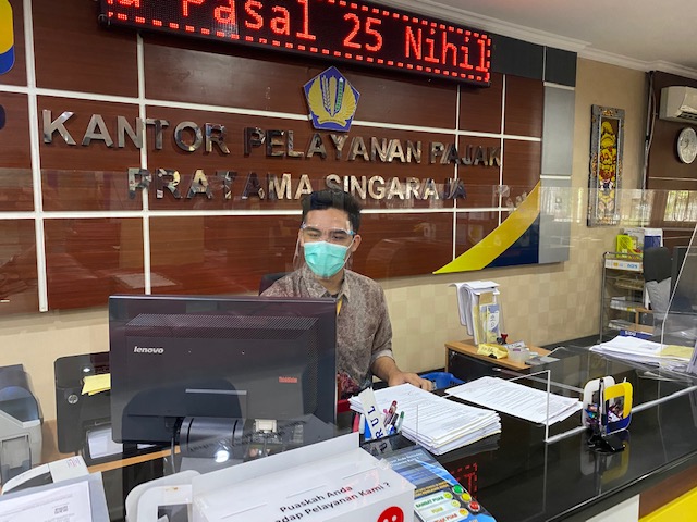 Kantor Pelayanan Pajak (KPP) Pratama Singaraja tetap membuka layanan perpajakan secara tatap muka bagi wajib pajak di masa pandemi Covid-19 di Tempat Pelayanan Terpadu KPP Pratama Singaraja, Bali (Jumat, 16/7). Pelayanan ini diberikan dengan tetap menerapkan protokol kesehatan pencegahan Covid-19.