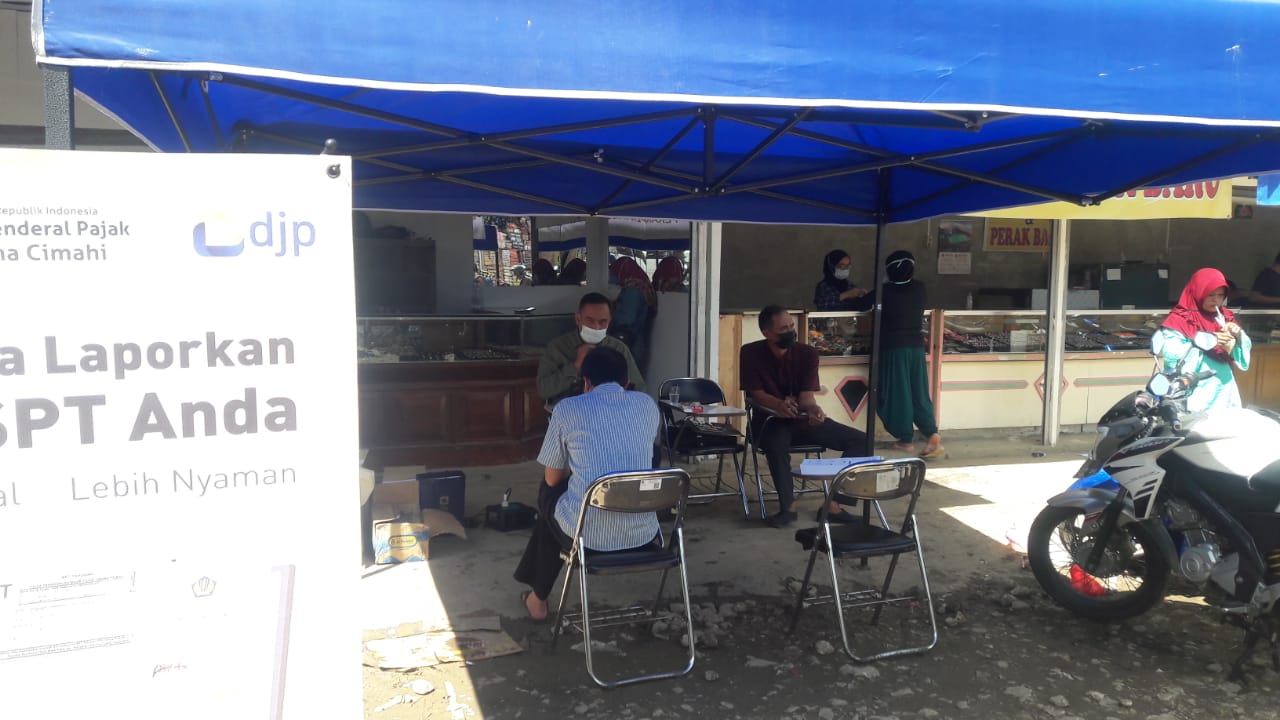 Kantor Pelayanan Pajak Pratama Cimahi membuka layanan pojok pajak di Pasar Tagog Padalarang, Kabupaten Bandung Barat, Jawa Barat (Kamis, 25/3).