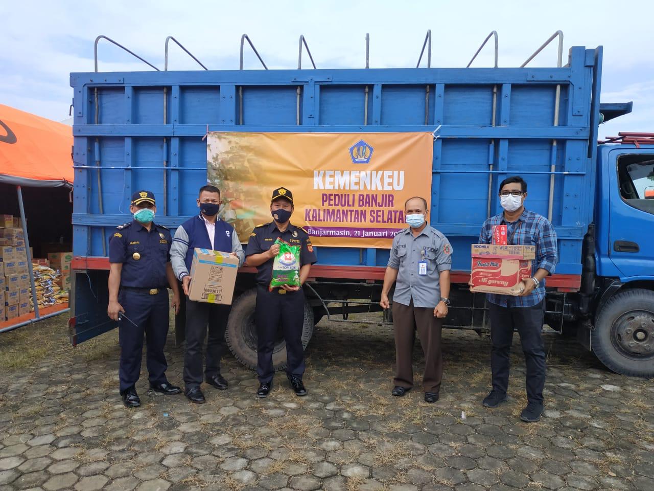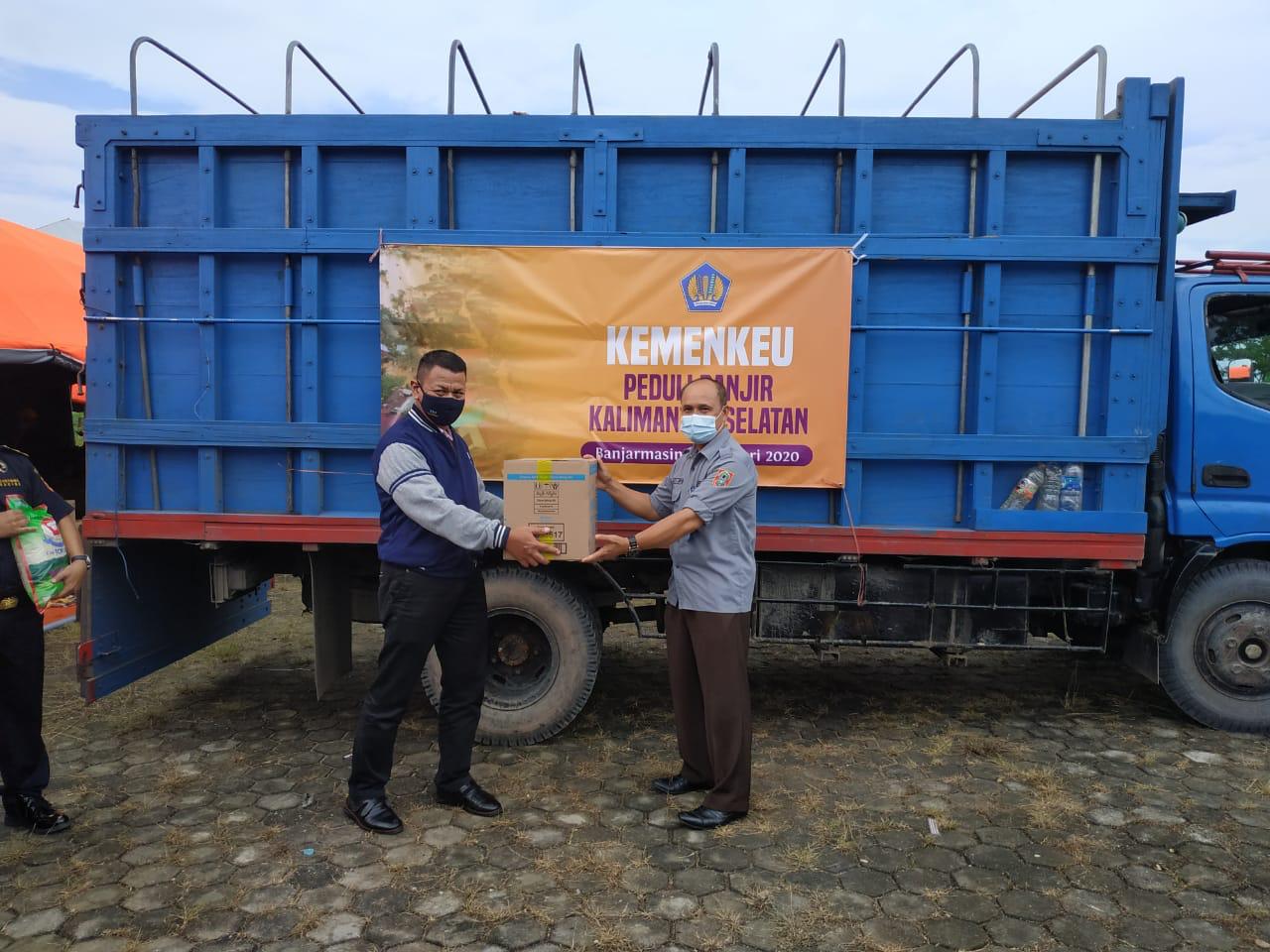 Penyaluran bantuan berupa paket sembako, air mineral, susu, biskuit, masker, sabun mandi, serta keperluan bayi dan wanita telah diberikan kepada BPBD Kalsel guna disalurkan ke beberapa kota terdampak banjir di Provinsi Kalsel. Bantuan ini merupakan dana penggalan dari pegawai Kementerian Keuangan di Provinsi Kalimantan Selatan sebagai bentuk kepedulian kepada warga terdampak banjir.