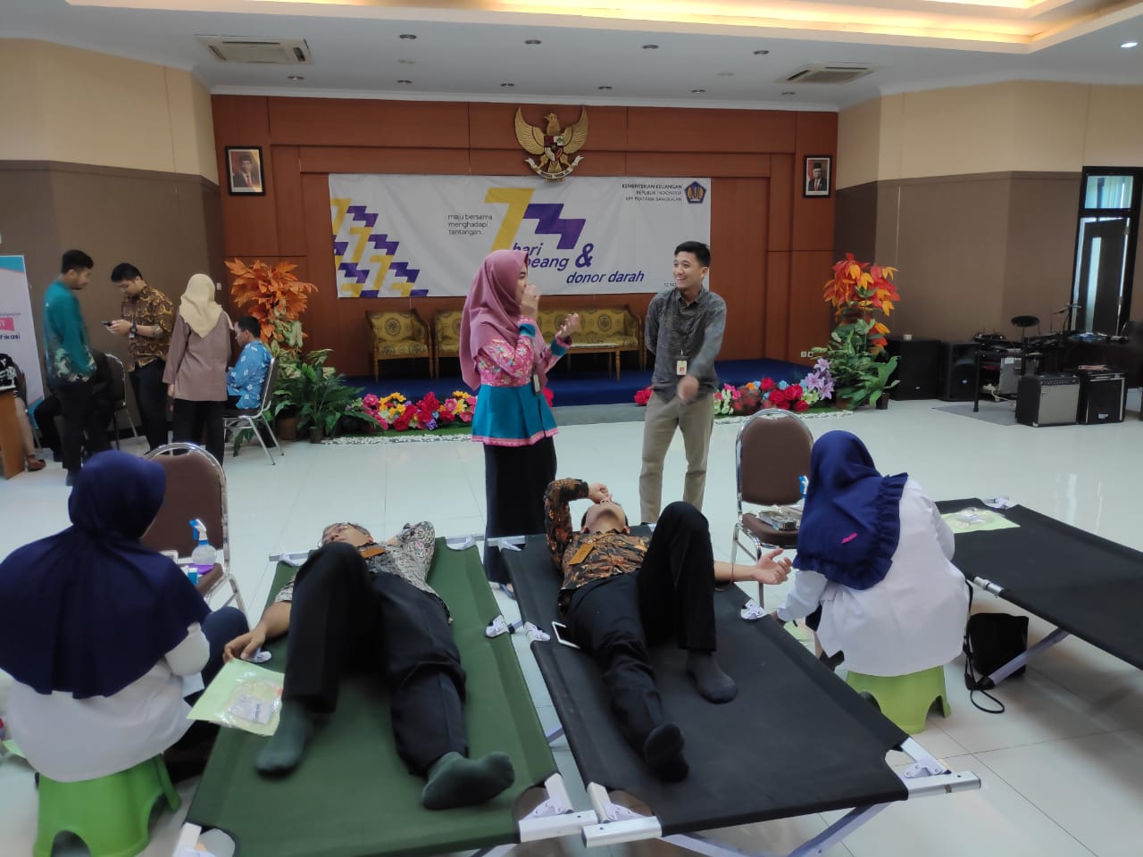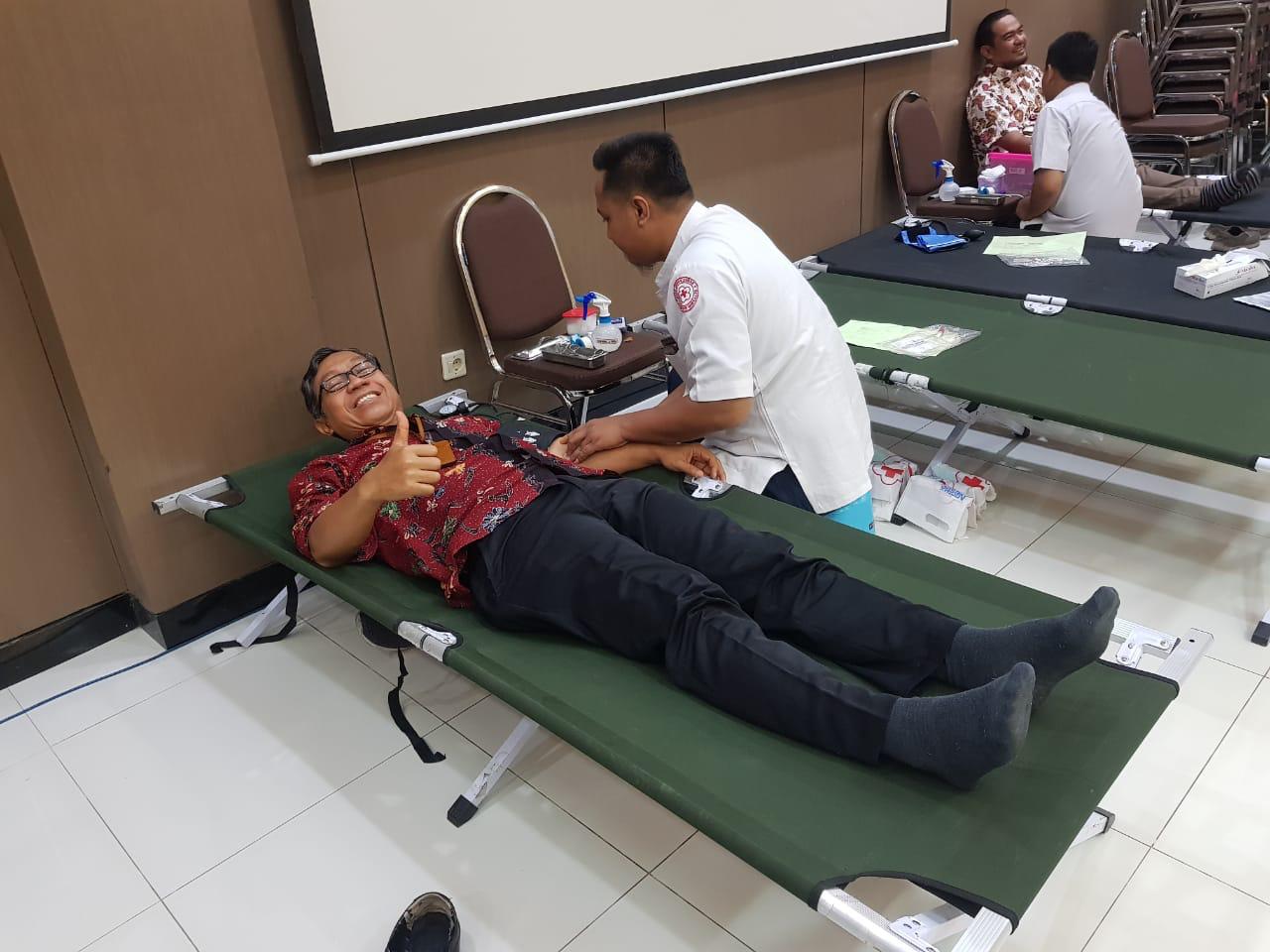 Bekerja sama dengan PMI Bangkalan, KPP Pratama Bangkalan menggelar aksi donor darah yang melibatkan pegawai dan karyawan di lingkungan KPP Pratama Bangkalan bertempat di aula kantor, Bangkalan (Selasa, 12/11).