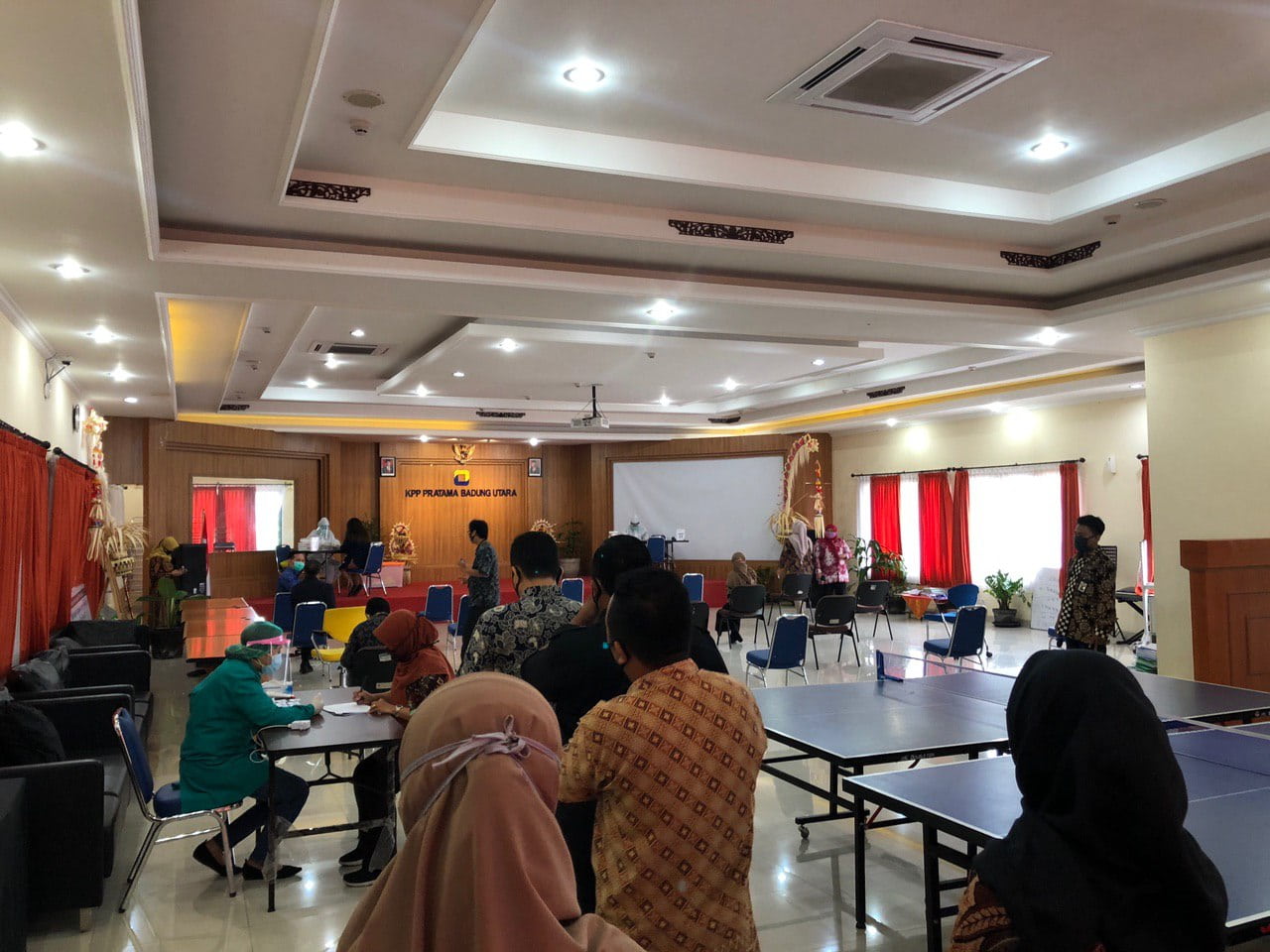 KPP Pratama Badung Utara dan KP2KP Kerobokan mengadakan Rapid Test kepada seluruh pegawai untuk mengantisipasi dan memutus mata rantai Corona Virus Disease 2019 (Covid-19) di Aula KPP Pratama Badung Utara dimulai pukul 09:00 hingga 15:00 WITA (Selasa, 4/8).