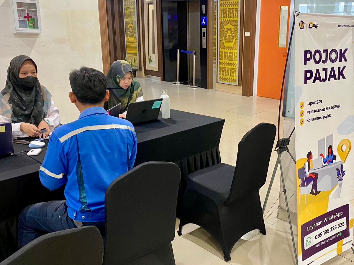 KPP Pratama Natar membuka layanan pojok pajak setiap pukul 09.00 WIB. Adapun layanan perpajakan yang diberikan kepada wajib pajak, seperti asistensi pelaporan Surat Pemberitahuan (SPT) Tahunan, permohonan lupa electronic filing identification number (EFIN), pemadanan Nomor Induk Kependudukan (NIK) menjadi Nomor Pokok Wajib Pajak (NPWP), serta konsultasi umum perpajakan. Selain para calon penumpang, terlihat beberapa pegawai di lingkungan Bandara Radin Inten II, yaitu petugas kebersihan, petugas keamanan, dan pegawai dari maskapai penerbangan turut memanfaatkan layanan ini.