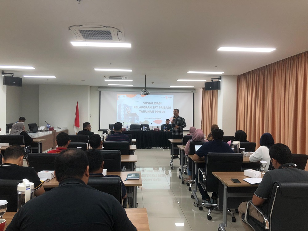 Kantor Pelayanan Pajak Pratama Jambi Telanipura menggelar edukasi serta asistensi terkait Pemadanan Nomor Induk Kependudukan (NIK) sebagai Nomor Pokok Wajib Pajak (NPWP) dan Pelaporan Surat Pemberitahuan (SPT) Tahunan Orang Pribadi melalui e-Filing di Bank Jambi Cabang Utama yang beralamat di Jl Akhmad Yani No.18, Telanaipura, Kota Jambi (Kamis, 22/2). Kegiatan ini digelar untuk meningkatkan kepatuhan wajib pajak, khususnya para Pegawai Cabang Utama Bank Jambi.