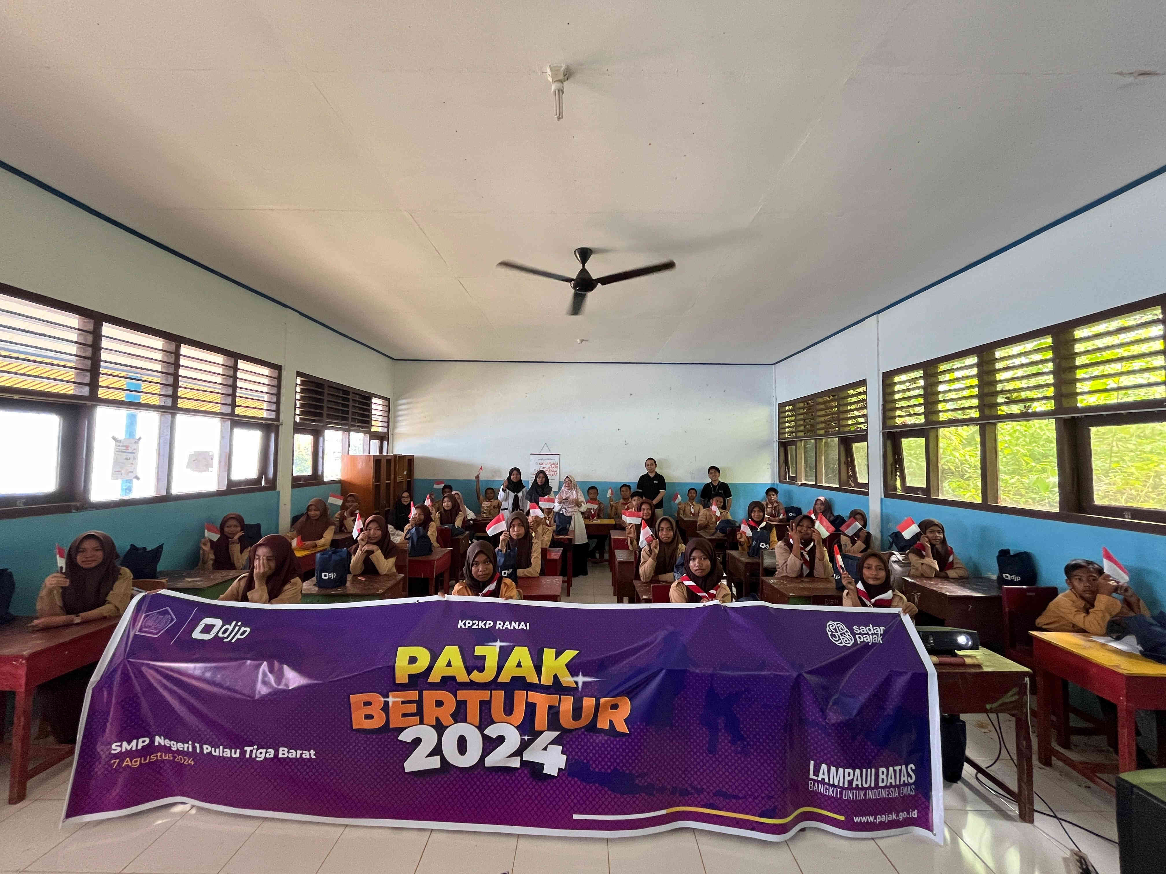 Kantor Pelayanan, Penyuluhan, dan Konsultasi Perpajakan (KP2KP) Ranai sukses melangsungkan Pajak Bertutur 2024 (Rabu, 7/8). Edukasi pajak tahunan tersebut diselenggarakan di Sekolah Menengah Pertama Negeri (SMPN) 1 Pulau Tiga Barat yang merupakan salah satu kecamatan terluar di Kabupaten Natuna, Kepulauan Riau.