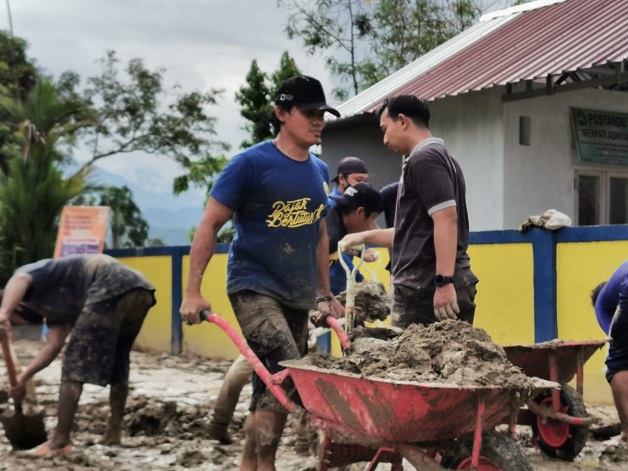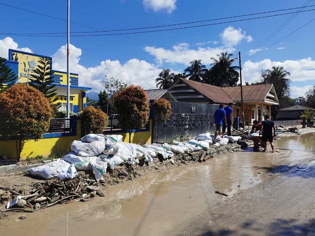 Kepala Kantor Pelayanan Pajak (KPP) Pratama Palopo bersama sejumlah pegawai yang menjadi relawan melaksanakan kegiatan pembersihan gedung Kantor Pelayanan, Penyuluhan dan Konsultasi Perpajakan (KP2KP) Masamba di Kabupaten Luwu Utara usai terdampak bencana banjir bandang (Sabtu, 18/7).