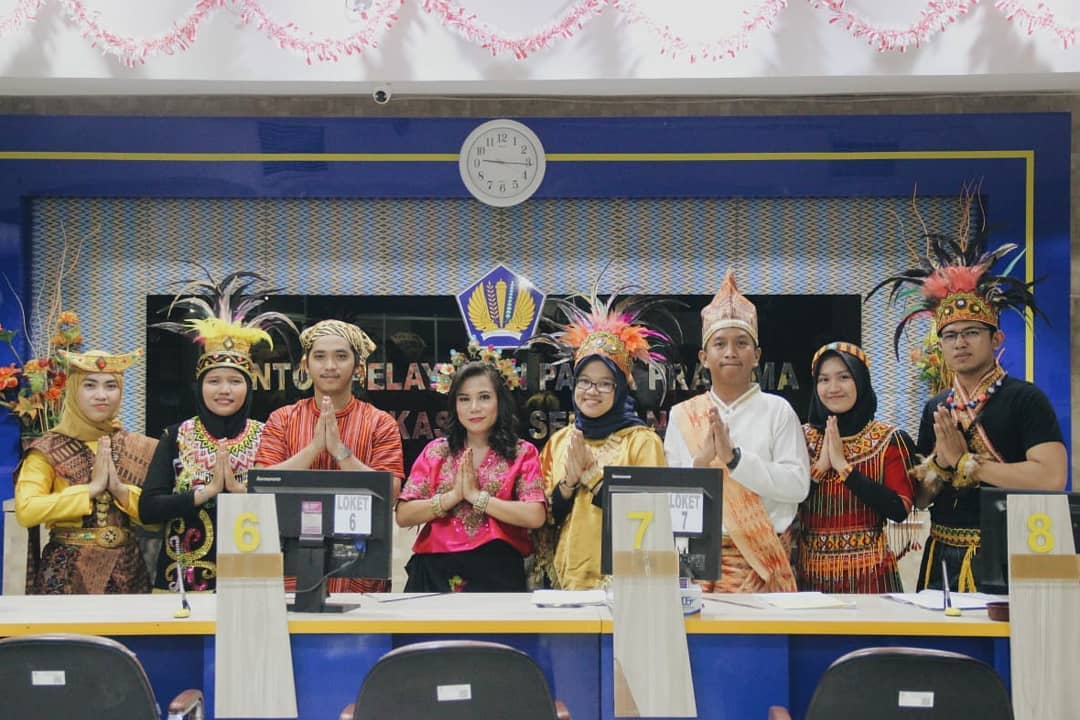Kantor Pelayanan Pajak (KPP) Pratama Makassar Selatan memberikan pelayanan pada wajib pajak menggunakan pakaian adat (Senin, 30/10). Pegawai frontliner mengenakan pakaian adat dalam rangka memperingati Hari Sumpah Pemuda dan Hari Oeang.