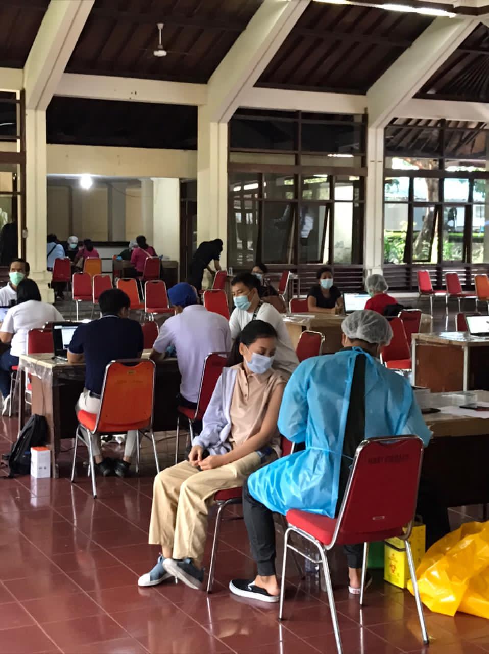 Bekerja sama dengan Dinas Kesehatan Provinsi Bali, pemberian vaksinasi Covid-19 tahap pertama ini dilaksanakan secara bergantian kepada seluruh ASN di Provinsi Bali. Setelah pegawai melakukan registrasi dan pengecekan kesehatan terlebih dahulu, suntikan vaksin hanya akan diberikan kepada pegawai yang lolos pengecekan kesehatan.