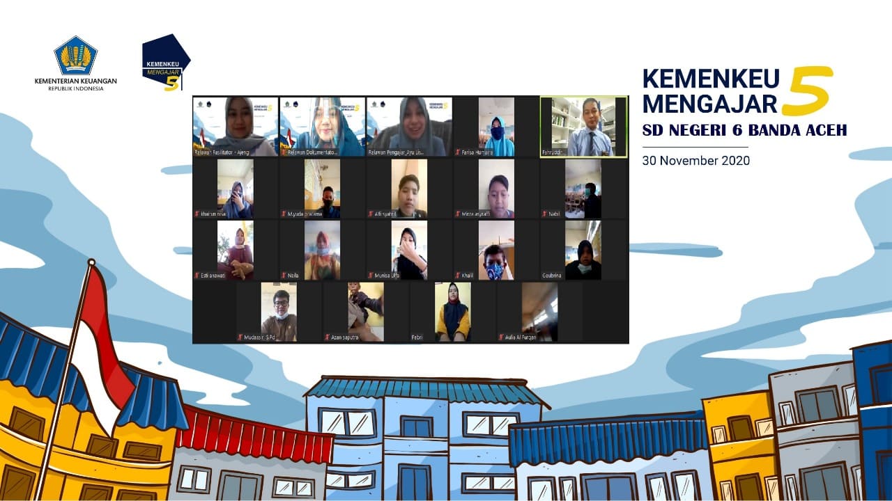 Sebanyak 1250 pegawai Kementerian Keuangan ikut serta dalam kegiatan tahunan bertajuk Kemenkeu Mengajar 5 di berbagai daerah di Indonesia (Senin, 30/11). Kegiatan yang tahun ini dilakukan secara daring ini melibatkan 84 sekolah dari seluruh Indonesia. Menteri Keuangan, Sri Mulyani Indrawati, turut serta menjadi pengajar dalam kegiatan ini.
