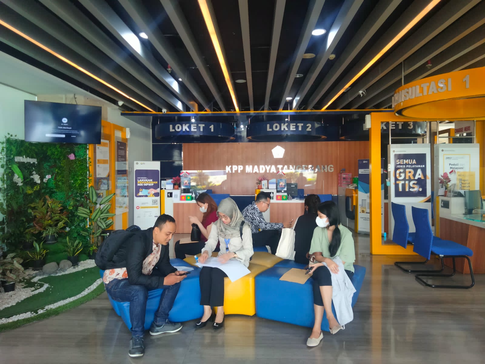 Wajib pajak yang mendatangi TPT tetap harus memperhatikan protokol kesehatan dengan mengambil nomor antrean di layanan mandiri dan konsultasi kepada petugas.