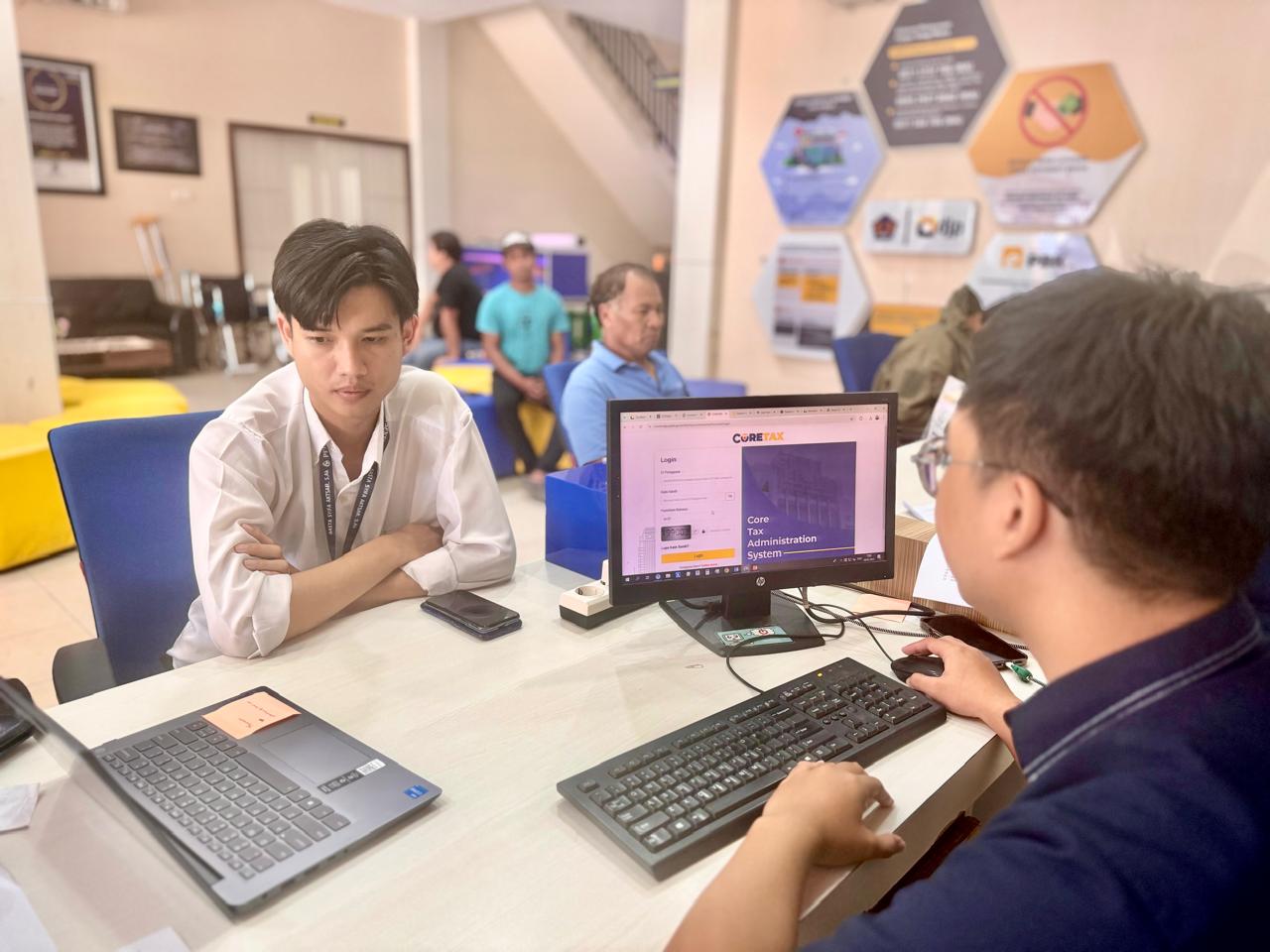 Setelah memastikan akun Coretax DJP instansi dan orang pribadi dapat diakses, Alvino memperkenalkan fitur-fitur menu pada aplikasi tersebut. Setelah menerima seluruh penjelasan, Aktsar mengucapkan terima kasih kepada petugas.