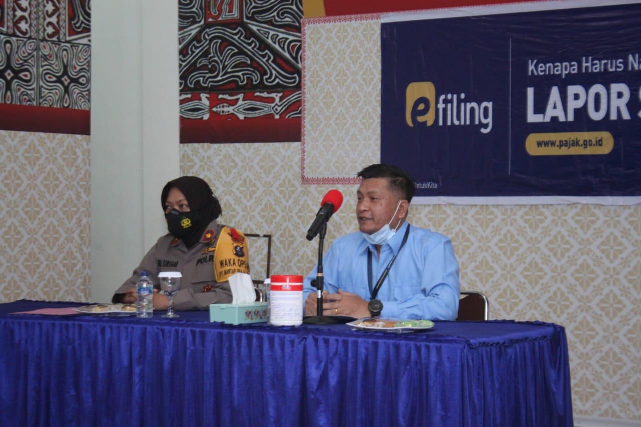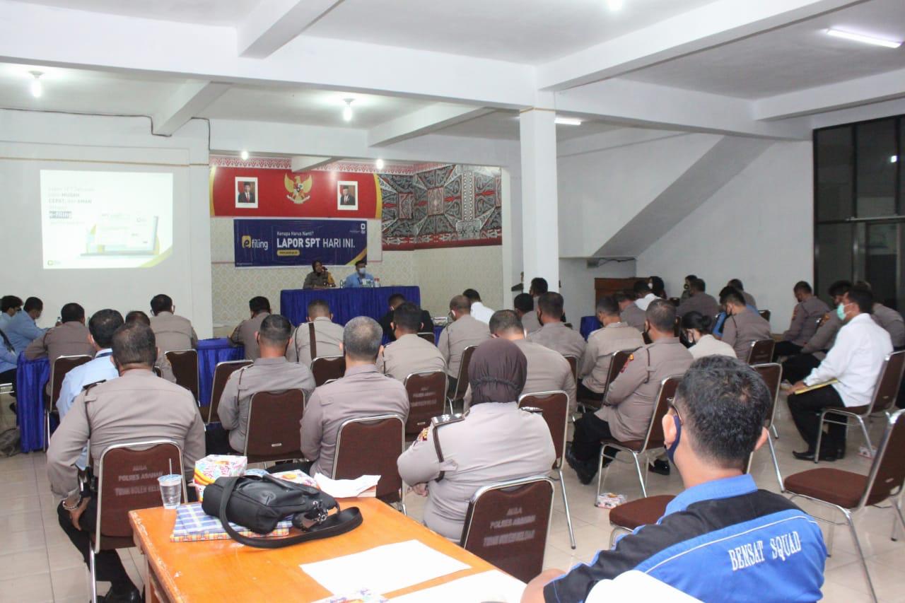 Kantor Pelayanan Pajak (KPP) Pratama Kisaran menyelenggarakan sosialisasi pelaporan Surat Pemberitahuan (SPT) Tahunan Pajak Penghasilan (PPh) melalui e-Filing bertempat di aula Kepolisian Resor (Polres) Asahan, Kabupaten Asahan, Sumatera Utara (Rabu, 10/3).