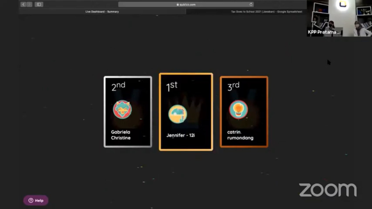 Acara TGTS yang dilakukan secara daring ini bertujuan untuk mengenalkan pajak dan menanamkan kesadaran pajak sejak dini kepada para pelajar sebagai generasi penerus bangsa maupun calon wajib pajak masa depan. Selain penyampaian materi, Tim Penyuluh Pajak KPP Pratama Pontianak Barat juga mengadakan kuis interaktif menggunakan aplikasi quizziz.