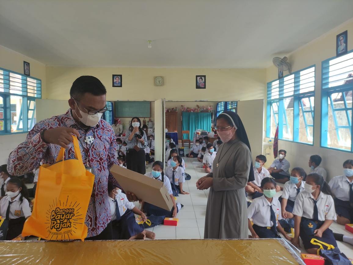 Kantor Pelayanan, Penyuluhan, dan Konsultasi Perpajakan (KP2KP) Raha melaksanakan kegiatan edukasi pajak pada generasi muda yang dikemas dalam acara Tax Goes To School (TGTS) di SMP Frater Raha, Kabupaten Muna (Rabu, 29/9).