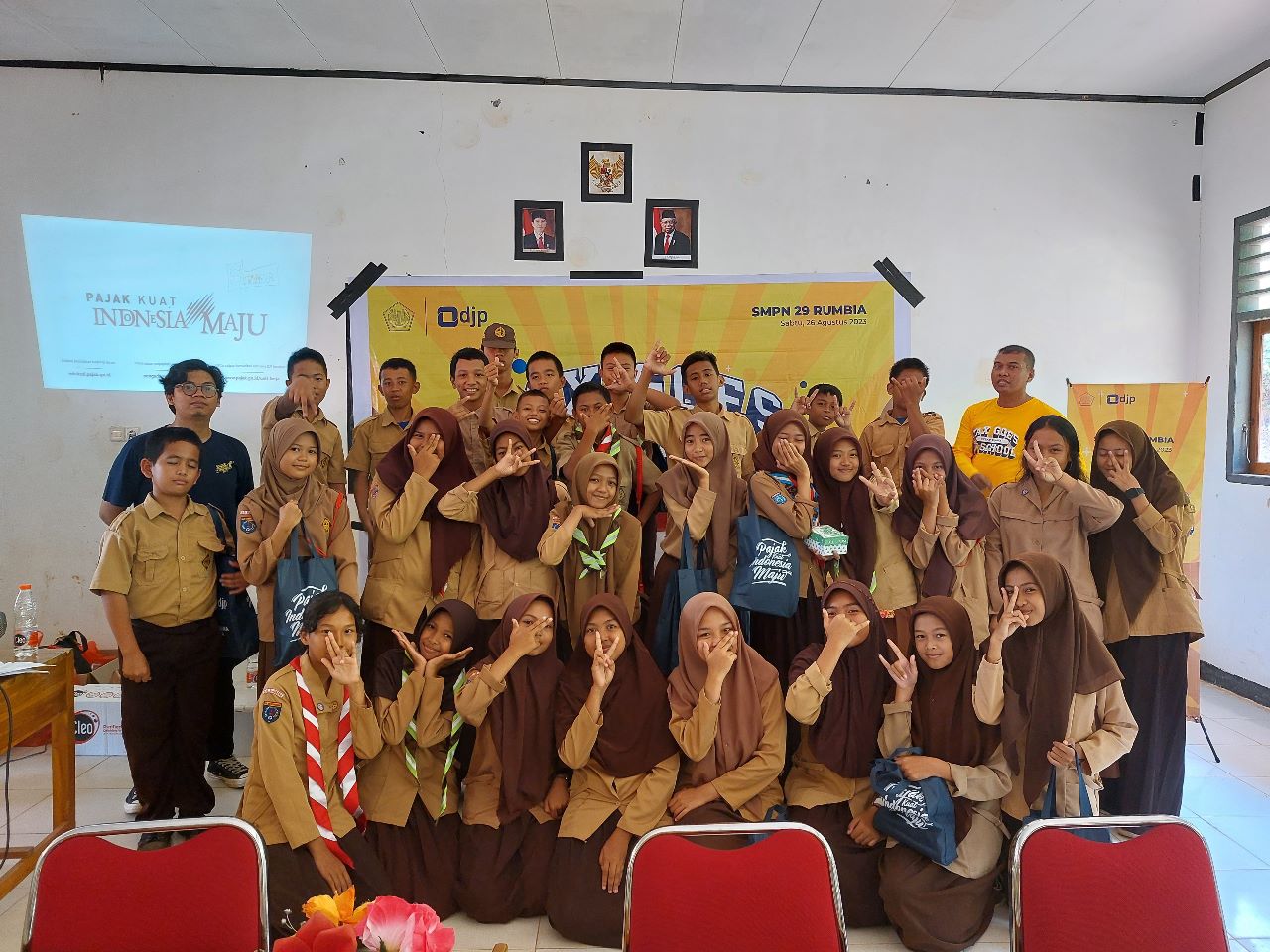 Kantor Pelayanan, Penyuluhan, dan Konsultasi Perpajakan (KP2KP) Rumbia menyelenggarakan Tax Goes To School di Aula Sekolah Menengah Pertama Negeri (SMPN) 29 Rumbia di Kabupaten Bombana, Provinsi Sulawesi Tenggara (Sabtu, 26/8).