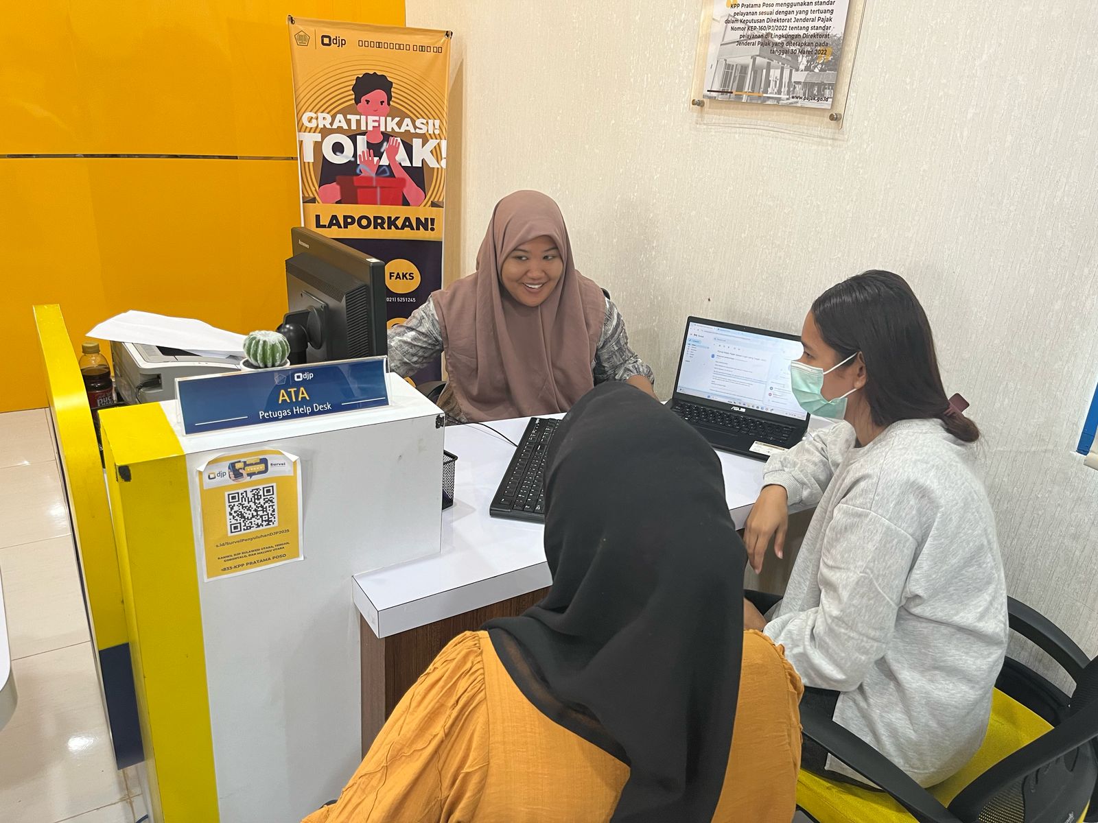 Loket Helpdesk Kantor Pelayanan Pajak (KPP) Pratama Poso disambangi oleh wajib pajak yang terdaftar sebagai Pengusaha Kena Pajak (PKP) dalam rangka asistensi pembuatan faktur pajak melalui aplikasi Coretax DJP di Kabupaten Morowali (Selasa, 4/3).