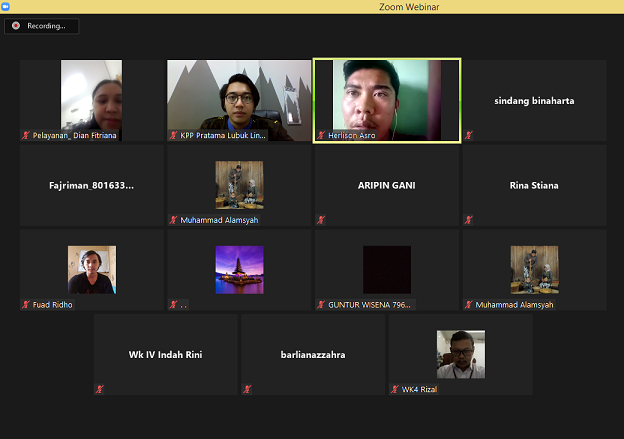 KPP Pratama Lubuk Linggau dan KP2KP Tugumulyo mengadakan Webinar (Seminar Web) Insentif dan fasilitas perpajakan selama masa pandemi Covid-19 melalui aplikasi Zoom Meeting (Jumat, 5/6). Kelas pajak kali ini dikhususkan untuk para pelaku UMKM di Lubuk Linggau agar mereka paham dan dapat memanfaatkan insentif pajak untuk usaha mereka.