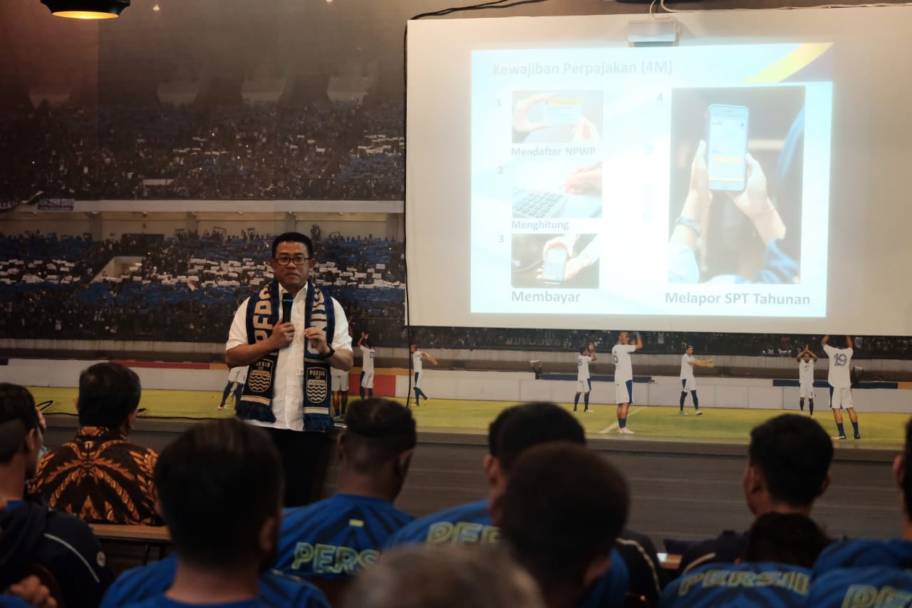 Kepala Kanwil DJP Jawa Barat I Neilmaldrin Noor dalam sambutannya menyampaikan ucapan selamat atas prestasi yang berhasil dicapai oleh Persib dalam Liga 1 2020 di Malang dan sekaligus mengajak para pemain Persib untuk melaksanakan kewajiban perpajakannya.