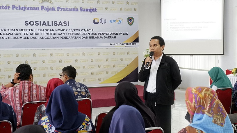 KPP Pratama Sampit bersama KPPN Sampit mengadakan Sosialisasi PMK-85 di Aula KPP Pratama Sampit (Kamis, 16/10).