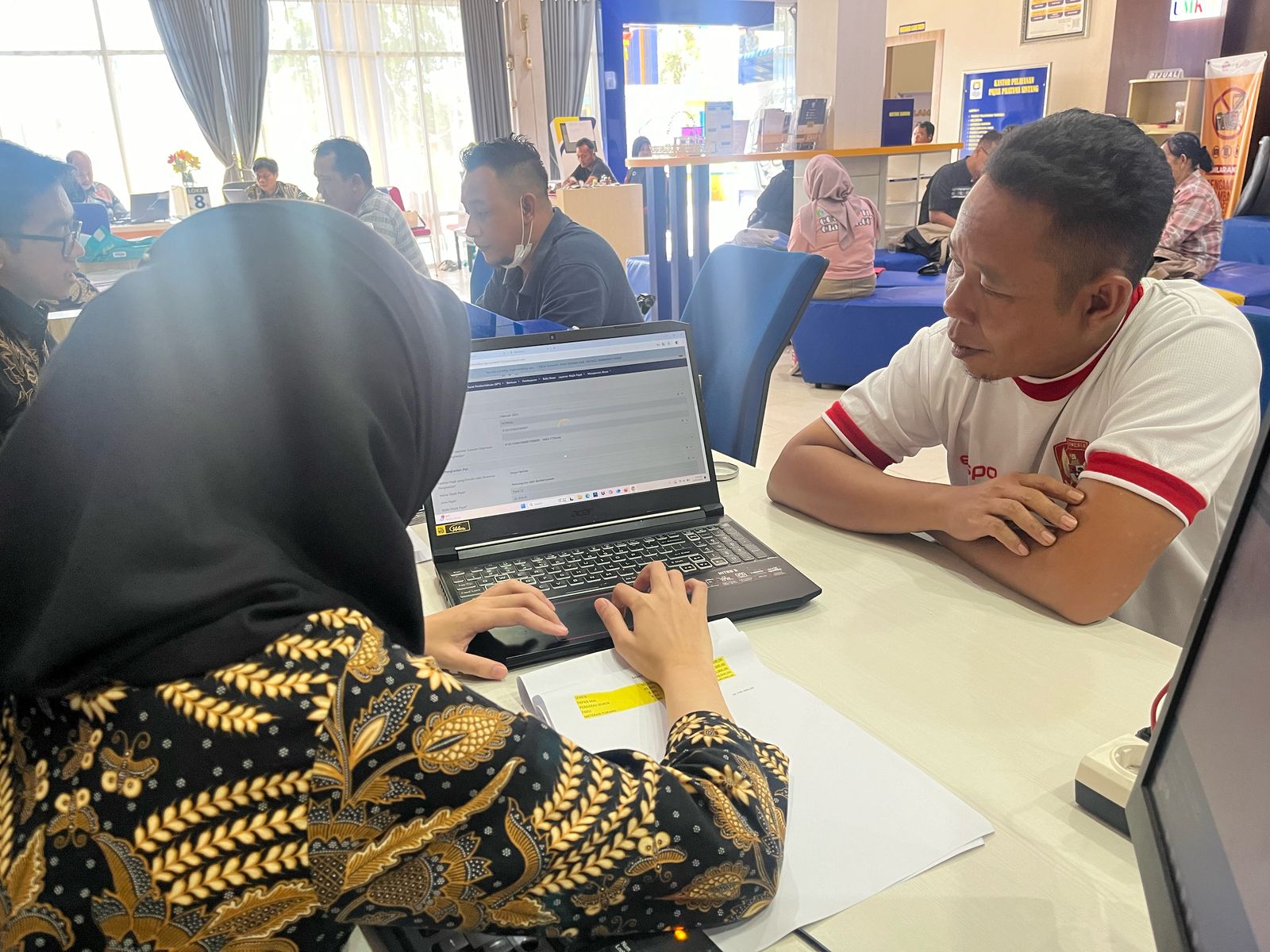 Bendahara Desa Tanjung Raya Serawai mendatangi Kantor Pelayanan Pajak (KPP) Pratama Sintang untuk berkonsultasi secara one-on-one terkait tata cara pembuatan bukti potong pajak. Sesi konsultasi berlangsung di loket helpdesk KPP Pratama Sintang, Kabupaten Sintang (Jumat, 14/2).