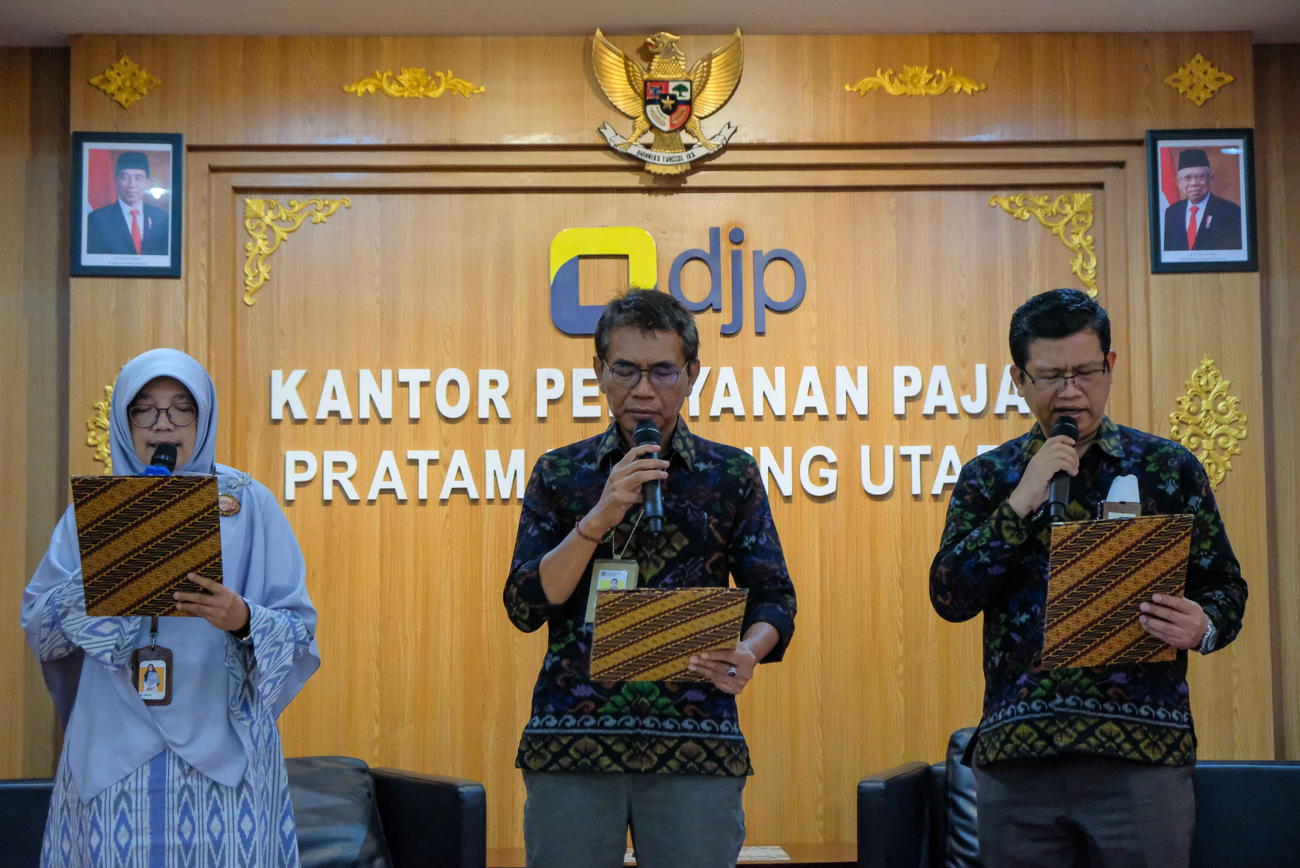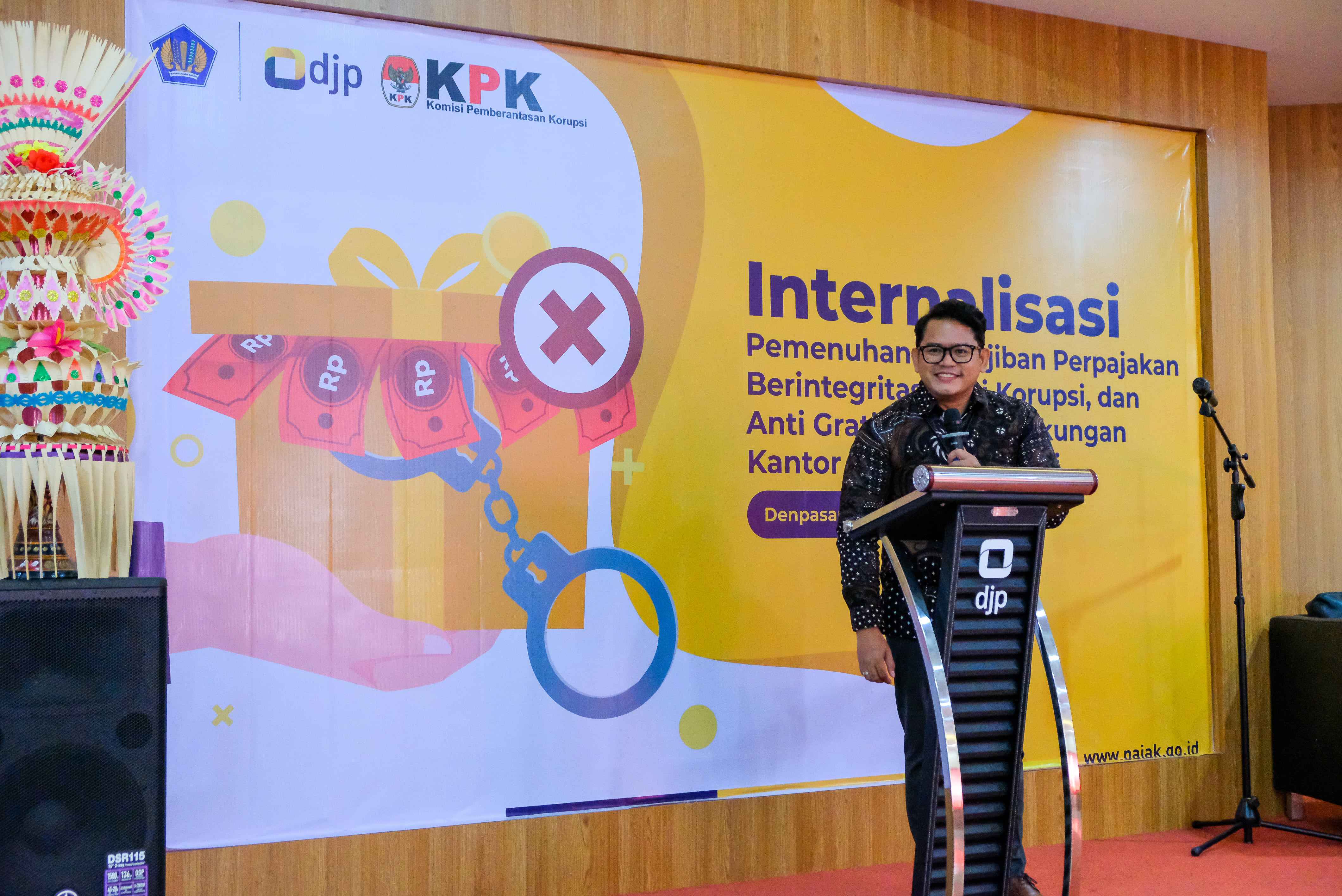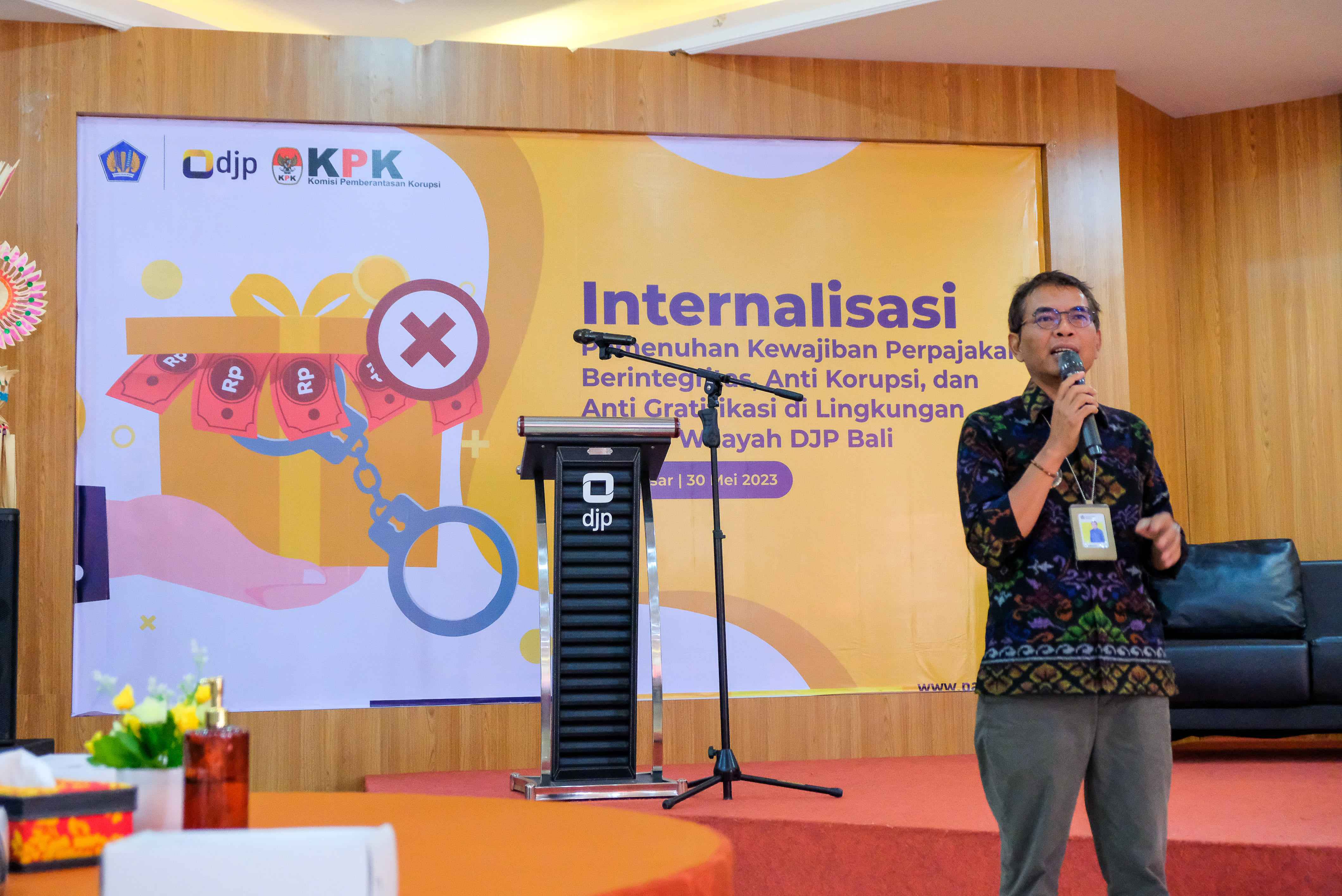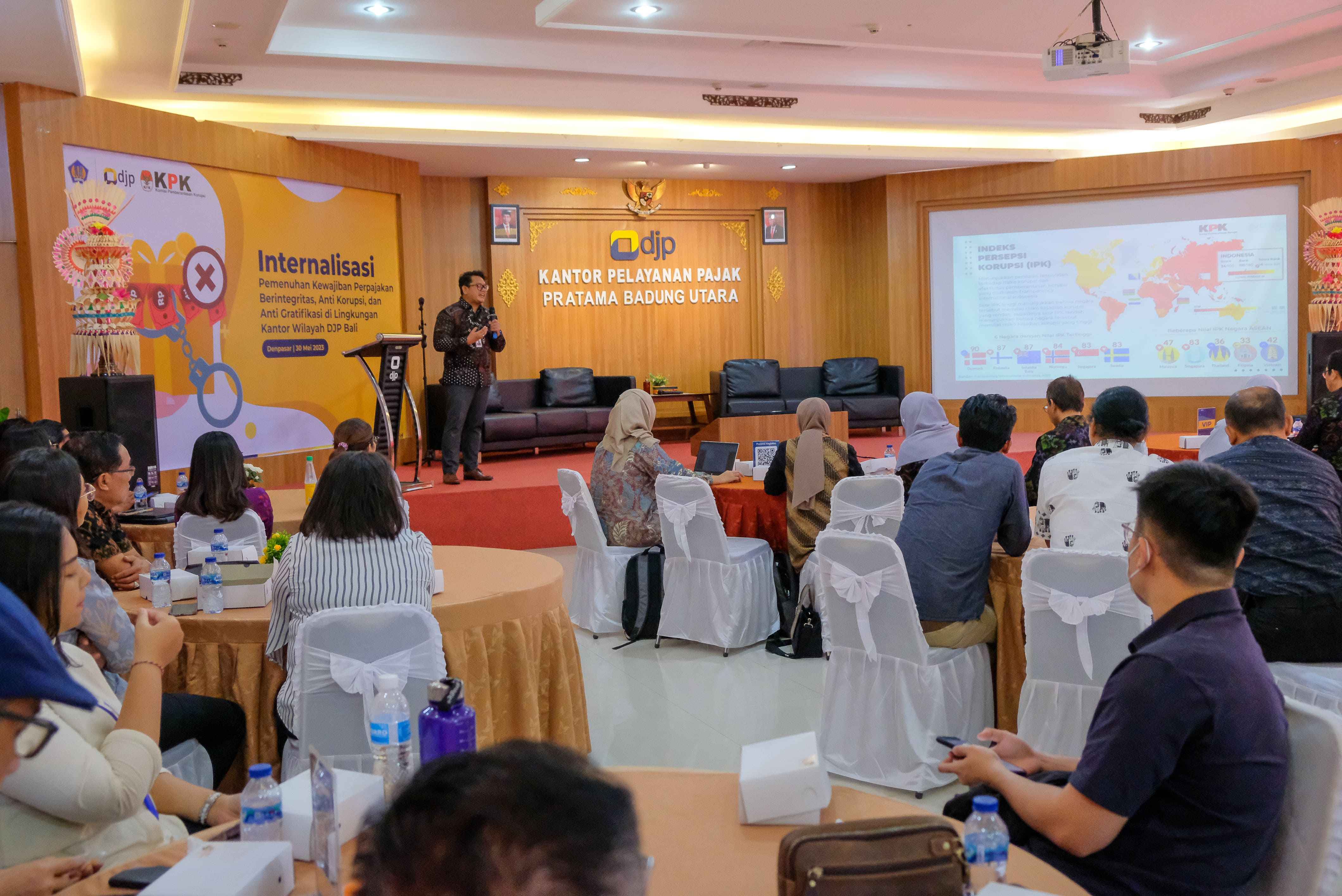 Kantor Pelayanan Pajak (KPP) Pratama Badung Utara bersama KPP Pratama Badung Selatan dan KPP Pratama Gianyar menyelenggarakan internalisasi “Pemenuhan Kewajiban Perpajakan Berintegritas, Antikorupsi, dan Antigratifikasi” dengan narasumber dari Komisi Pemberantasan Korupsi (KPK) di Aula KPP Badung Utara, Denpasar (Selasa, 31/5).