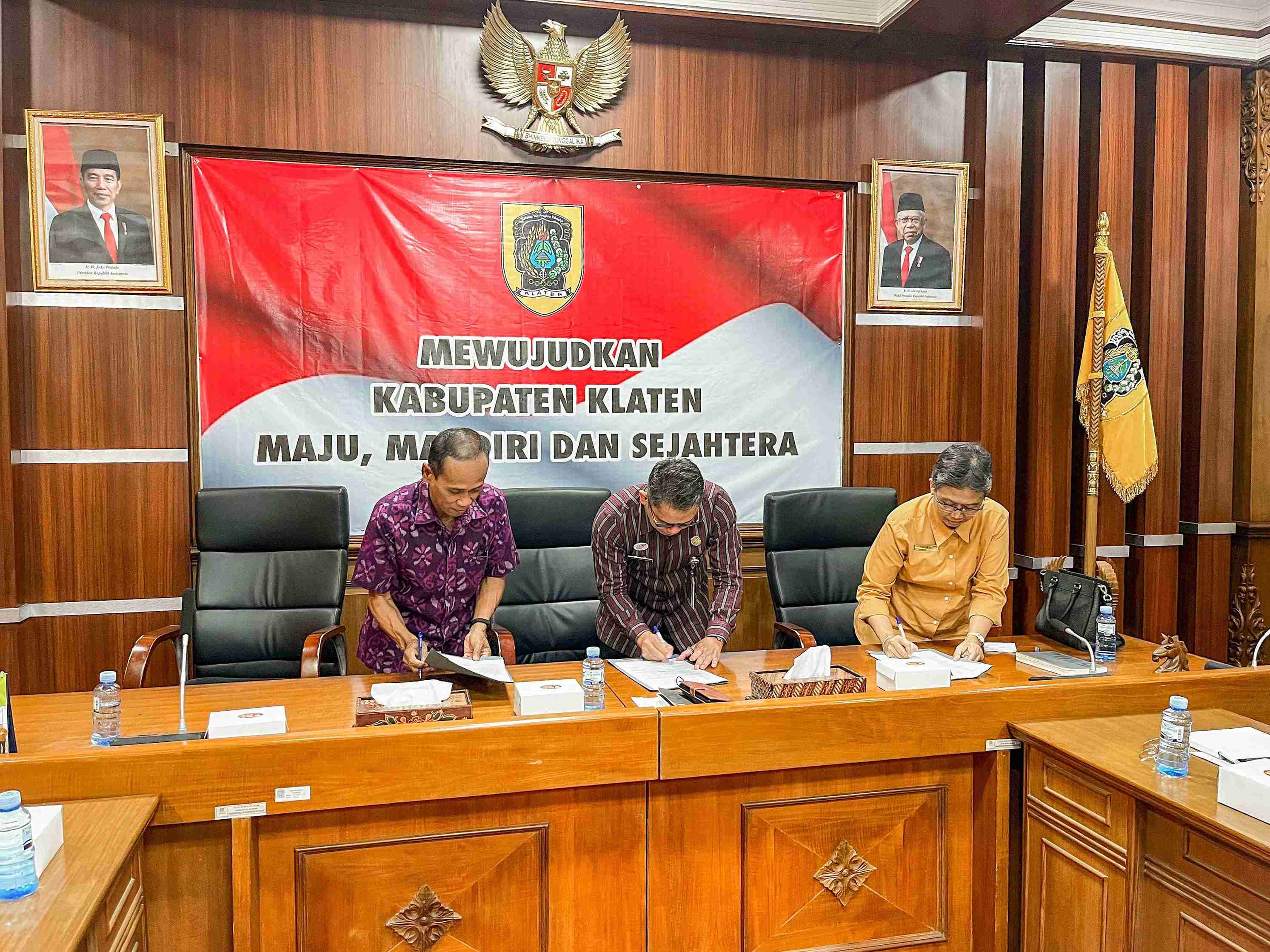 Penandatanganan berita acara ini dilakukan oleh Kepala Badan Pengelolaan Keuangan Pendapatan dan Aset Daerah Kabupaten Klaten Fadzar Indriawan, Kepala KPP Pratama Klaten Veronica Heryanti, dan Kepala KPPN Klaten Sugiyana.