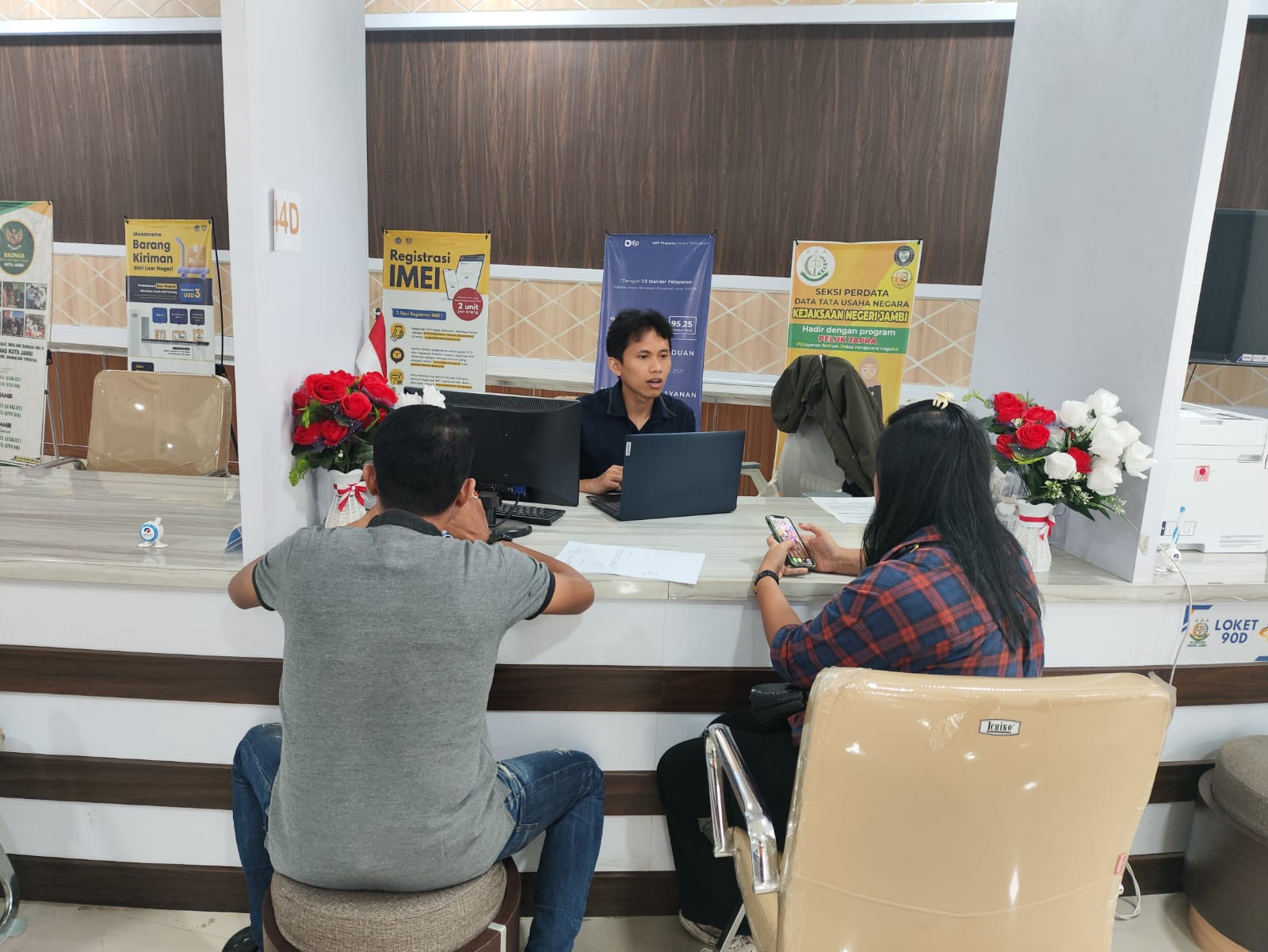 Kantor Pelayanan Pajak (KPP) Pratama Jambi Telanaipura memberikan edukasi terkait Konfirmasi Status Wajib Pajak (KSWP) kepada pemilik usaha kedai makanan, seorang wajib pajak orang pribadi, di Mal Pelayanan Publik (MPP) Kota Jambi, Paal Lima, Kecamatan Kota Baru, Kota Jambi (Rabu, 18/9).