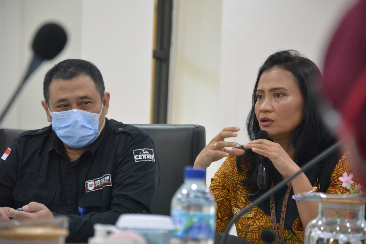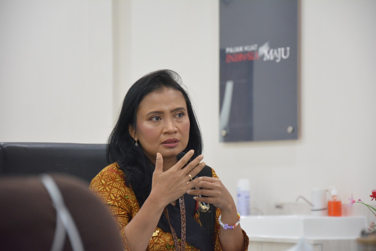 Kepala KPP Madya Semarang Bernadette Ning Dijah Prananingrum menyambut kunjungan patok banding Pemerintah Provinsi Jawa Timur terkait penerapan Wilayah Birokrasi Bersih dan Melayani di KPP Madya Semarang (Selasa, 8/12)