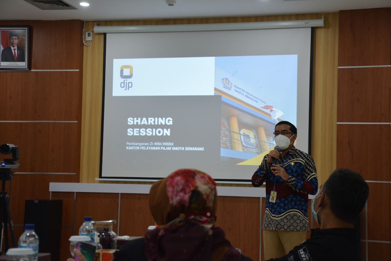 Rombongan Tim Pembangunan Zona Integritas Menuju Wilayah Bebas dari Korupsi/Wilayah Birokrasi Bersih dan Melayani (ZI-WBK/WBBM) Pemprov Jawa Timur dipimpin langsung oleh Kepala Bagian Reformasi Birokrasi Nana Fajar. Selain mempelajari langkah-langkah pencapaian WBBM, tim dari Pemprov Jatim tersebut disuguhkan dengan kegiatan office tour untuk mengenalkan layanan dan proses bisnis pada KPP Madya Semarang.