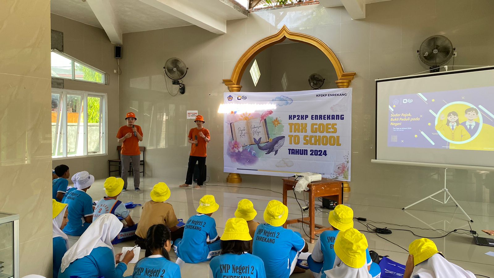 Kantor Pelayanan, Penyuluhan, dan Konsultasi Perpajakan (KP2KP) Enrekang menggelar kegiatan Tax Goes To School (TGTS) di Sekolah Menengah Pertama (SMP) Negeri 2 Enrekang yang beralamat di Jalan Emmy Saelan, Kelurahan Juppandang, Kecamatan Enrekang, Kabupaten Enrekang (Jumat, 1/3). Kegiatan ini bertempat di Mushola SMP Negeri 2 Enrekang dan dihadiri oleh 30 siswa dan siswi perwakilan dari tiap kelas.