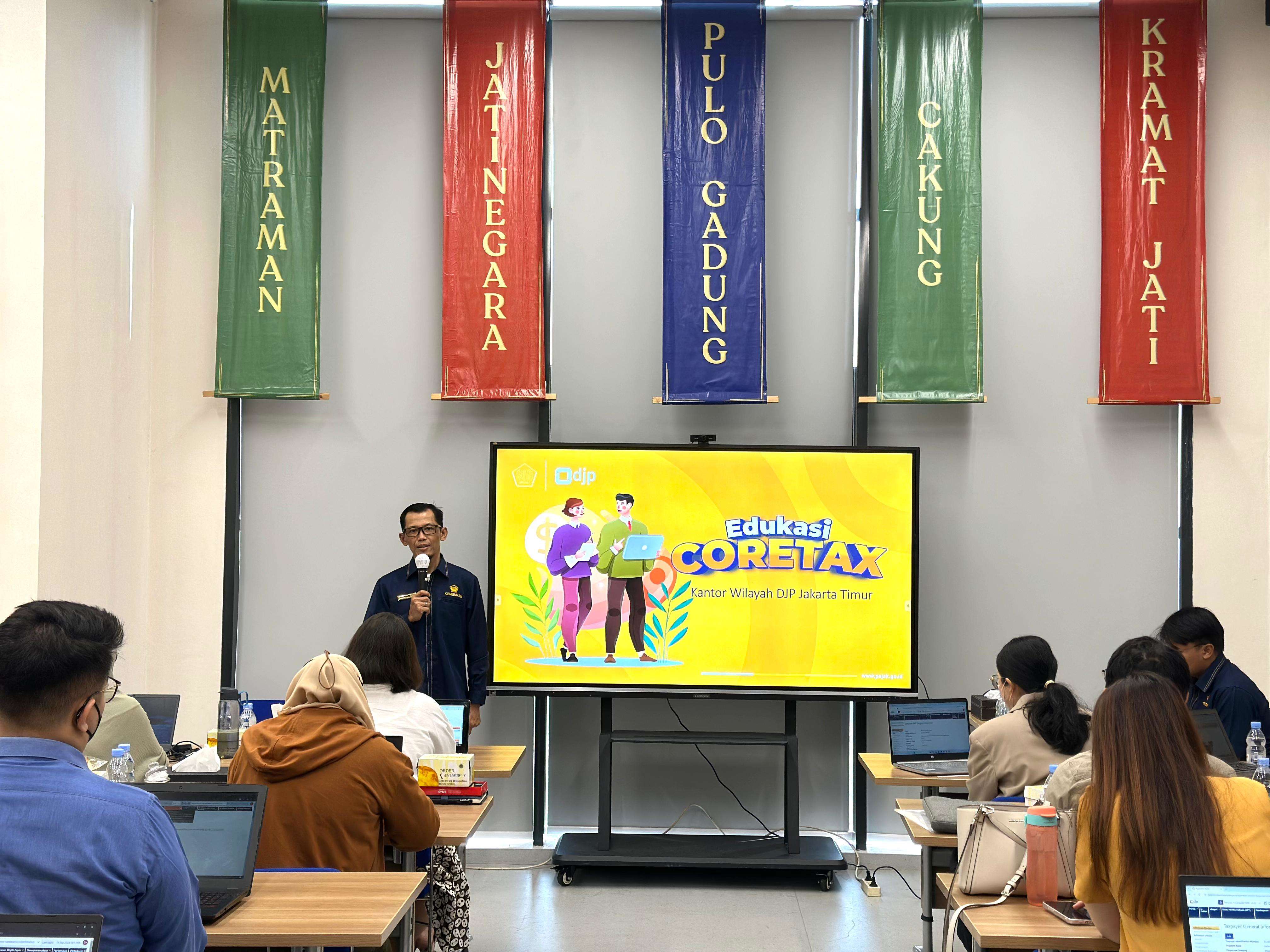 Kantor Wilayah (Kanwil) Direktorat Jenderal Pajak (DJP) Jakarta Timur telah selesai menyelenggarakan 12 batch pelatihan kegiatan Edukasi Coretax Tahap I kepada Wajib Pajak di lingkungan Kanwil DJP Jakarta Timur. Acara yang diselenggarakan di Aula Kanwil DJP Jakarta Timur ini diikuti oleh total 250 Wajib Pajak mulai dari tanggal 26 Agustus sampai dengan 18 September 2024 dengan melibatkan Tim Edukator Kanwil DJP Jakarta Timur sebanyak 19 orang. Penutupan Edukasi Coretax Tahap I Kanwil DJP Jakarta Timur ini dihadiri oleh Kepala Kantor Wilayah DJP Jakarta Timur, Ahmad Djamhari dan Kepala Bagian Umum, Nur Eko Budiantoro.