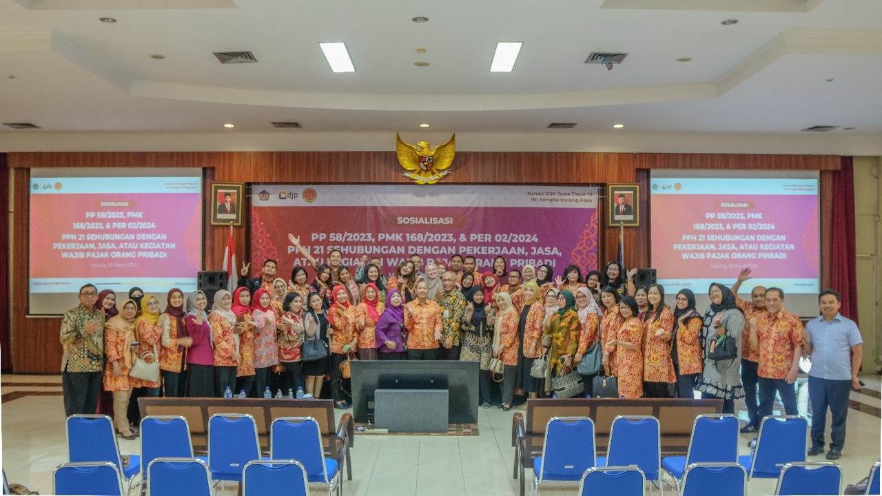 Penyuluh Pajak Kanwil Direktorat Jenderal Pajak Jawa Timur III (Kanwil DJP Jatim III) melaksanakan sosialisasi perpajakan yang membahas pemberlakuan tarif efektif dalam penghitungan Pajak Penghasilan (PPh) Pasal 21 serta Coretax system bertempat di aula Kanwil DJP Jatim III, Malang (Selasa, 5/3). Kegiatan tersebut diikuti oleh 76 peserta yang tergabung dalam Ikatan Notaris Indonesia Pengurus Daerah Malang Raya (INI Pengda Malang Raya).