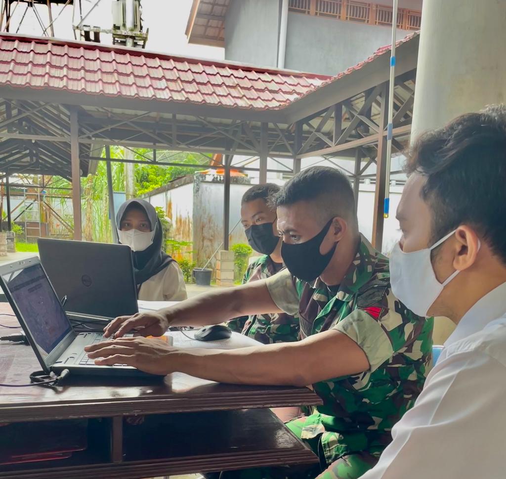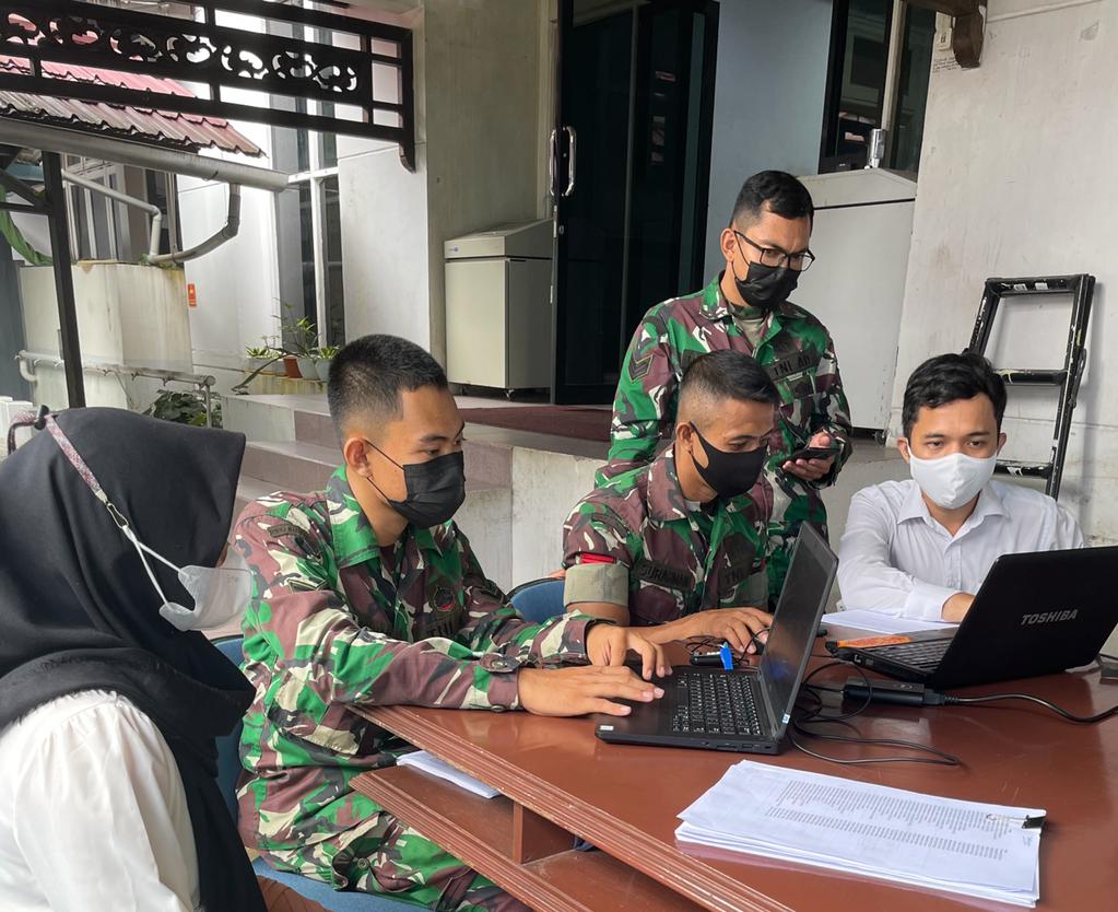 Asisten Penyuluh Pajak Kantor Pelayanan Pajak (KPP) Pratama Singkawang, Shalahudin Saesar, memberikan asistensi pelaporan Surat Pemberitahuan Tahunan Pajak Penghasilan Orang Pribadi melalui e-Filing kepada personel TNI Rindam XII Tanjungpura Kota Singkawang di halaman belakang KPP Pratama Singkawang (Senin, 24/1).
