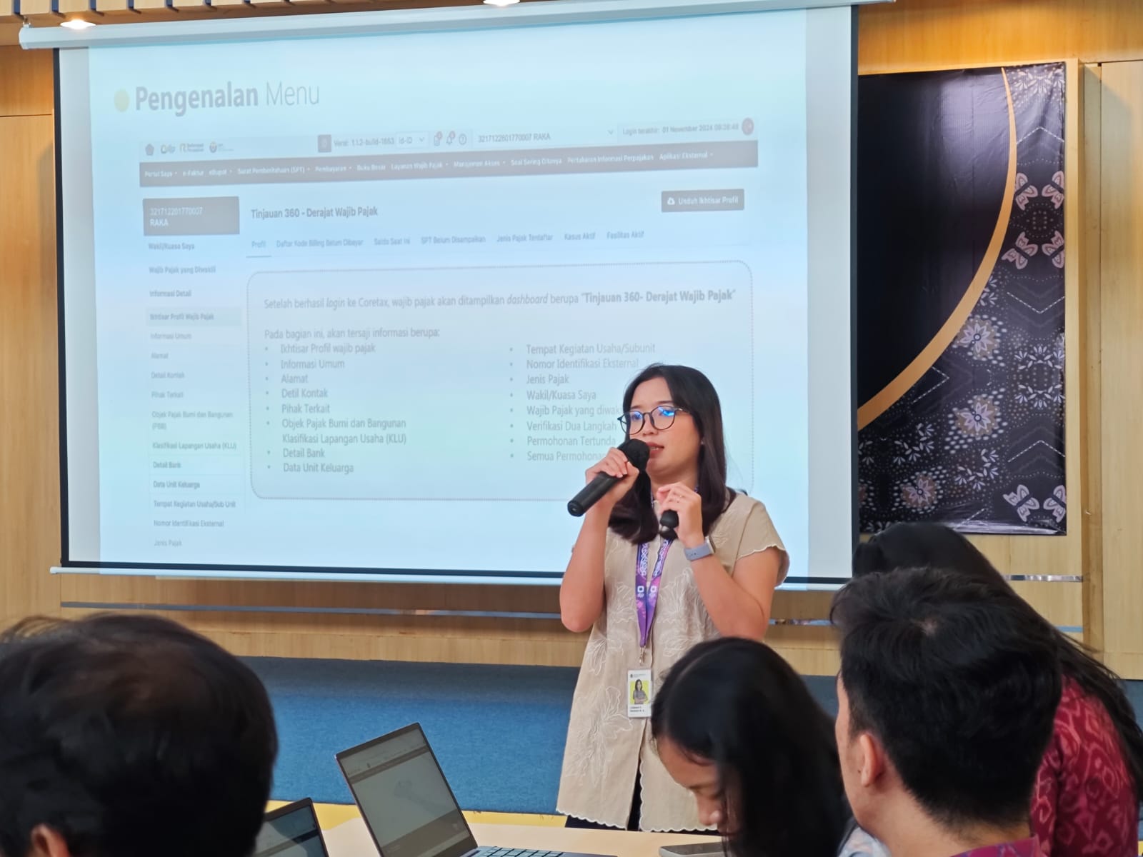 “Coretax merupakan sistem administrasi layanan Direktorat Jenderal Pajak yang memberikan kemudahan bagi wajib pajak,“ kata Lindasari C. Veronica Br. Sianturi. Hal itu disampaikannya ketika menjadi pemateri kegiatan kelas pajak yang diikuti 18 instansi pemerintah di Aula Kantor Pelayanan Pajak (KPP) Pratama Denpasar Barat di Denpasar (Jumat, 22/11).